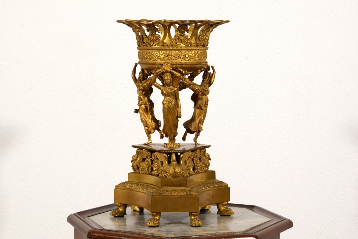 Retrouver le mobilier ou les objets d''art similaires à « Comporte-centre en bronze ciselé et doré, France époque Empire début du XIXe siècle » présenté par Brozzetti Antichità, antiquaire à Cherasco dans la catégorie Cassolettes, coupe et vase Empire, Objet de décoration.
