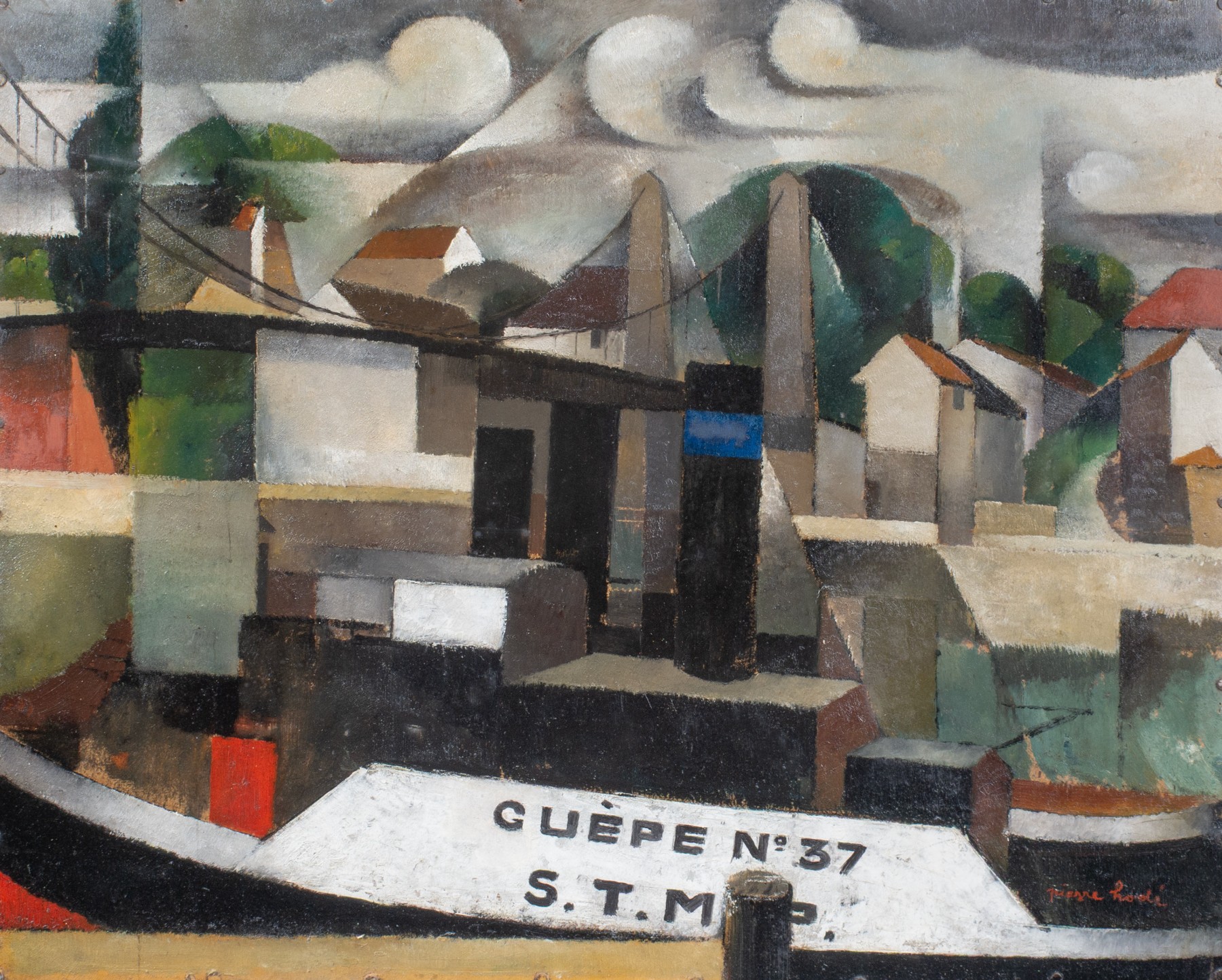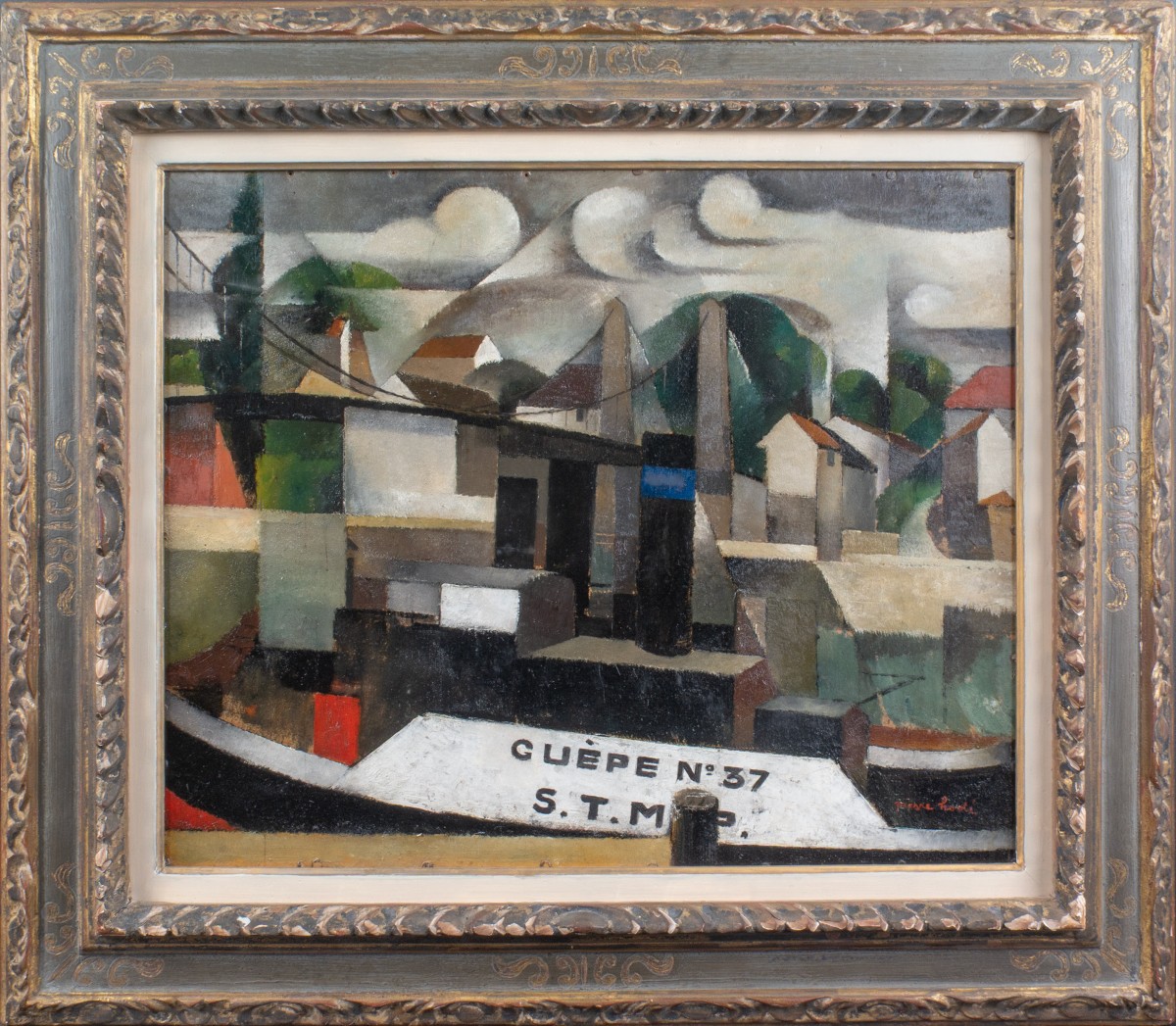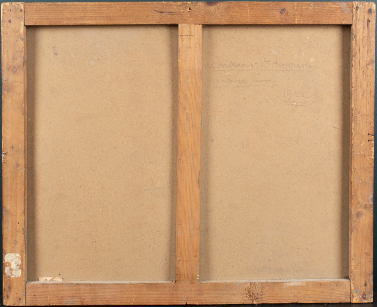 Huile sur panneau datée 1922, et titrée au dos Conflans Sainte-Honorine par Pierre Hodé.