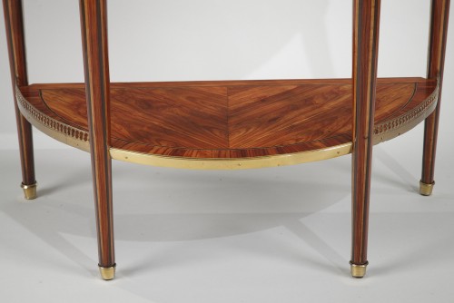 Retrouver le mobilier ou les objets d''art similaires à « Console demi lune estampillée I.G.SCHLICHTIG » présenté par Galerie Gilles Linossier, antiquaire à Paris dans la catégorie Console Louis XVI, Mobilier.