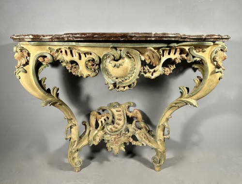 Retrouver le mobilier ou les objets d''art similaires à « Console laquée à décor rocaille, époque Louis XV vers 1740 » présenté par Franck Baptiste Paris, antiquaire à Paris dans la catégorie Console Louis XV, Mobilier.
