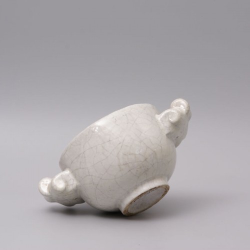 Coupe en faïence dure craquelée du céramiste suisse Paul Bonifas, vers 1930. Bonifas rencontre Le Corbusier et Ozenfant à Paris au début des années 20. Cette rencontre va profondément influencer son travail, il transposera les idées du "Purisme" dans la céramique. A son retour en Suisse en 1923 il reprendra un atelier de céramique à Ferney Voltaire (France) à côté de Genève dans lequel il développera toute une gamme d'objets "puristes". Cette coupe en est un des exemples.
