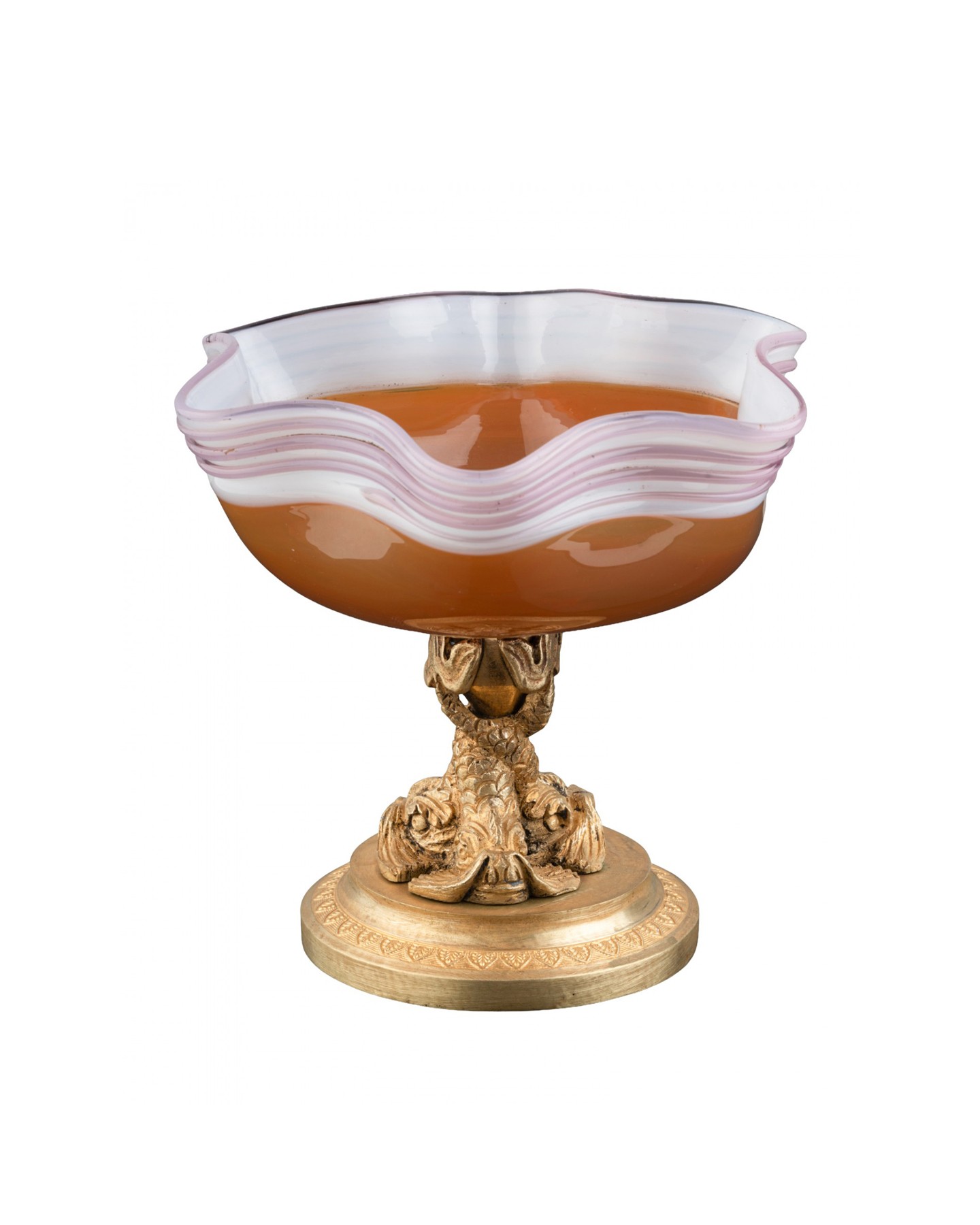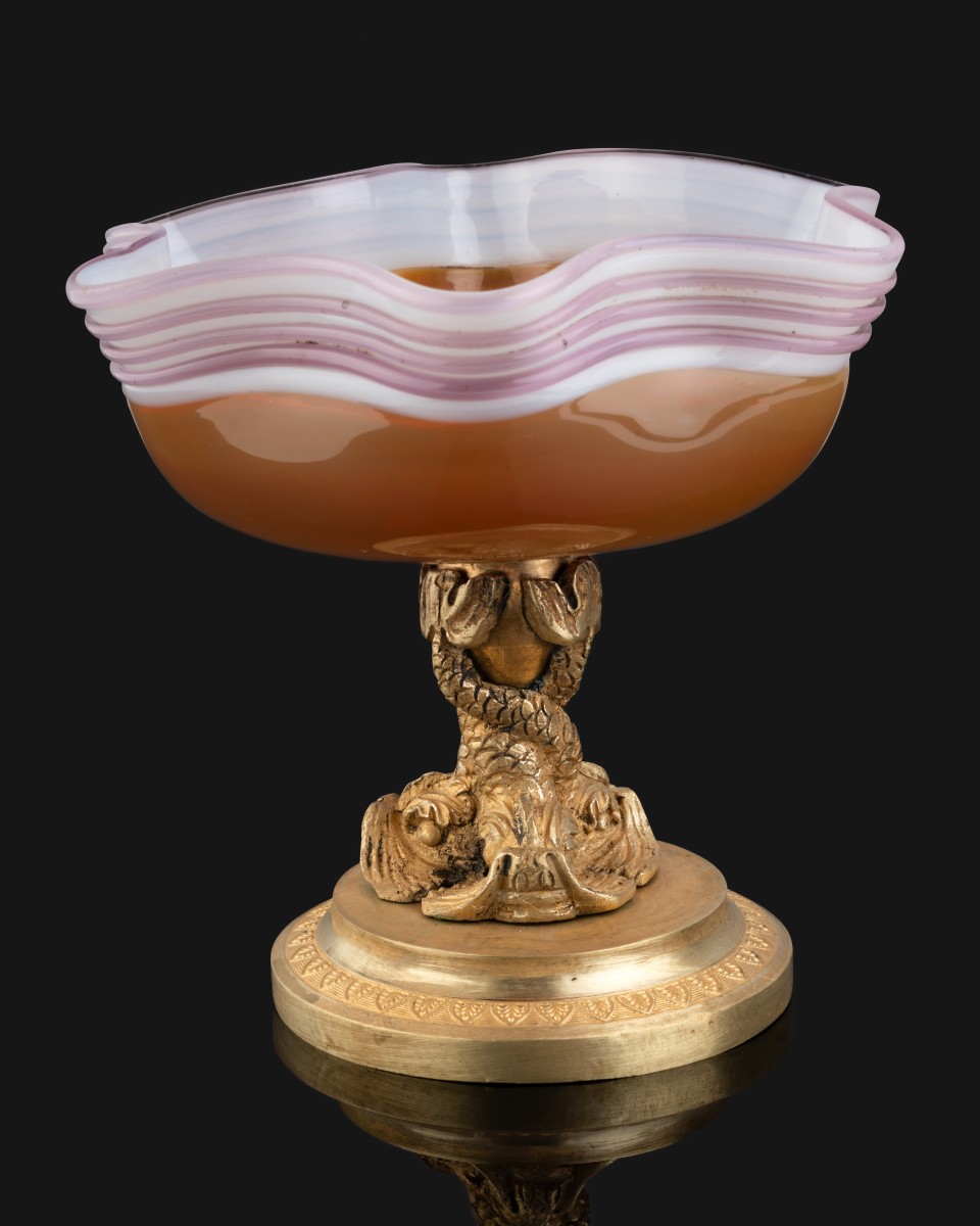 Elle repose sur un socle en bronze doré à décor de trois dauphins.