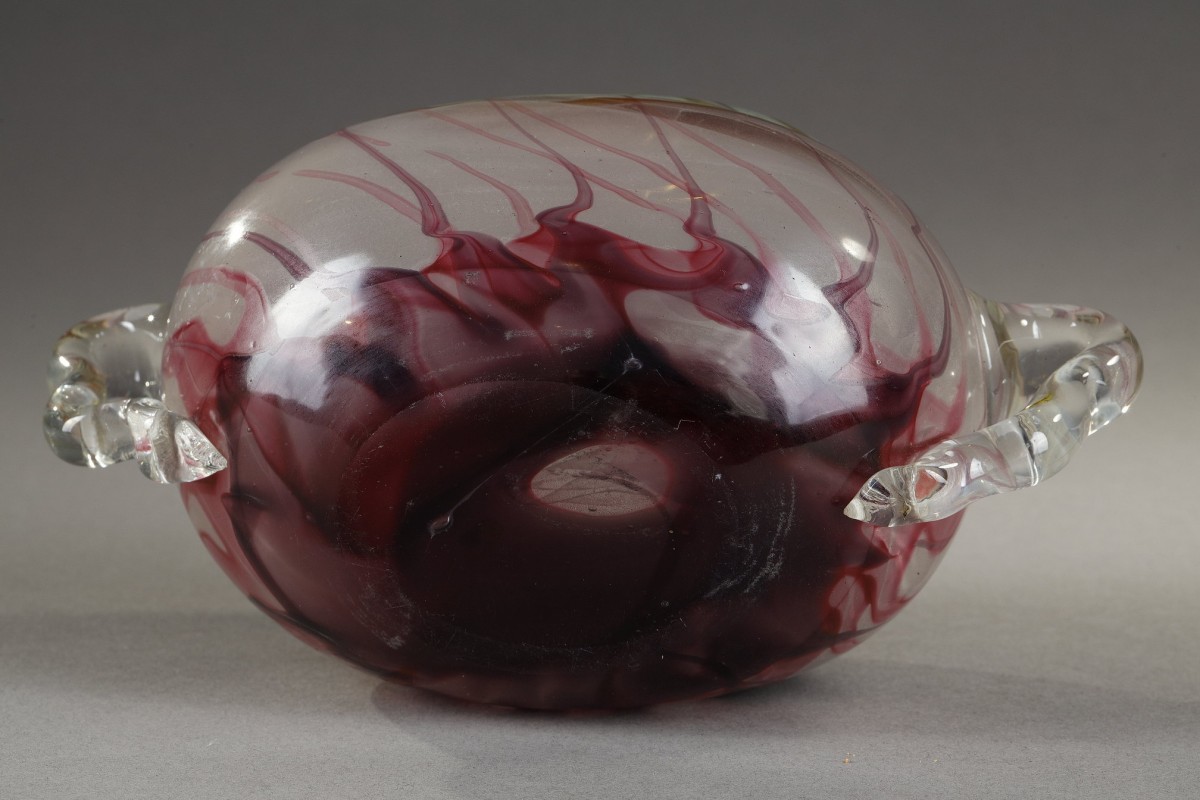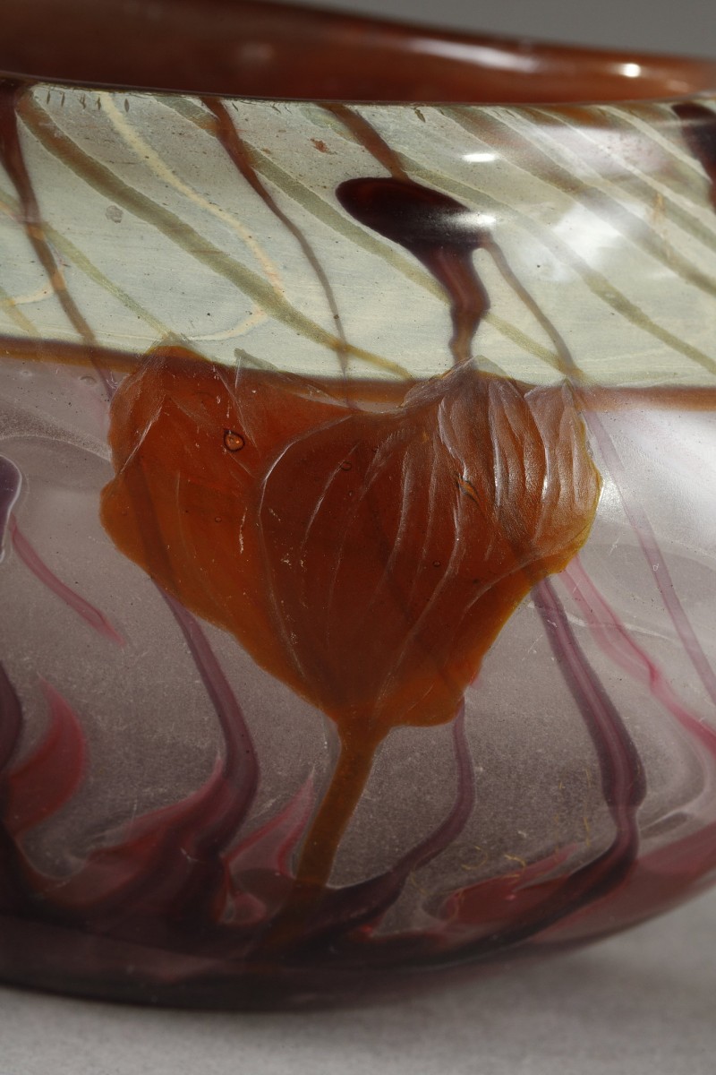 A partir de cette date, Emile Gallé développe intensément ses recherches techniques et esthétiques sur le travail du verre, domaine dans lequel il développe et crée de nouveaux procédés de fabrication. Ses verreries sont conçues à Meisenthal jusqu'en 1894, date à laquelle il ouvre une cristallerie dont la mise à feu a lieu en mai 1894 dans son entreprise à Nancy. Les recherches d'Emile Gallé aboutissent en 1898 au dépôt de deux brevets, pour "un genre de décoration et patine sur cristal" et "un genre de marqueterie de verres et cristaux" par dépôt de petites inclusions de verre dans la pâte en fusion. Ses pièces sont ensuite retravaillées par gravure, à la roue pour les plus précieuses, à l'acide fluorhydrique pour les plus courantes, ses graveurs-décorateurs dégageant ainsi un décor en camée sur un verre doublé ou multicouche.