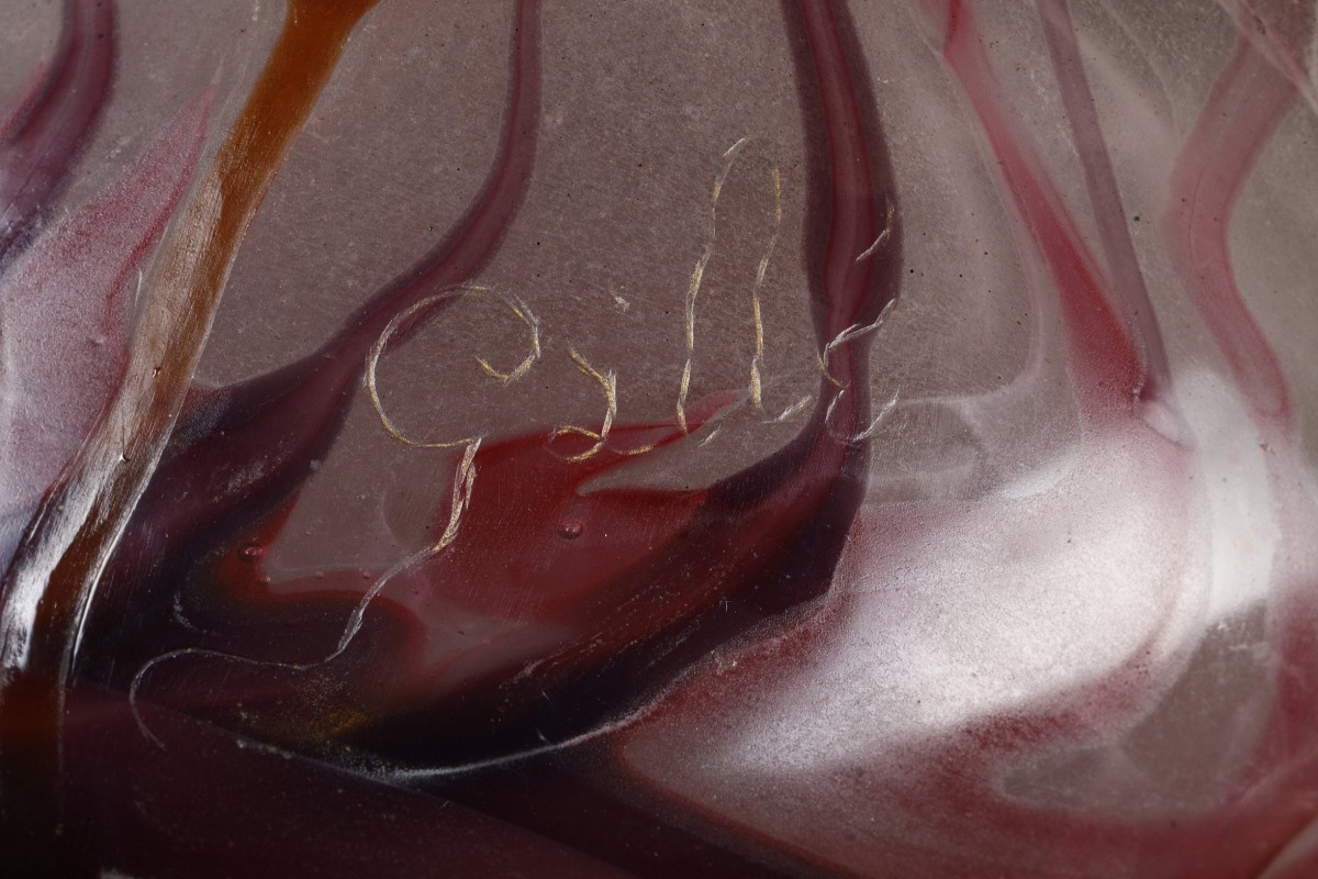 Après la mort d'Emile Gallé, en 1904, sa femme assure la direction des affaires. En 1907, création de la raison sociale des " Etablissements Gallé ". La verrerie continue ainsi à produire jusqu'en 1936. Chaque pièce porte la signature de Gallé avec de nombreuses variantes.