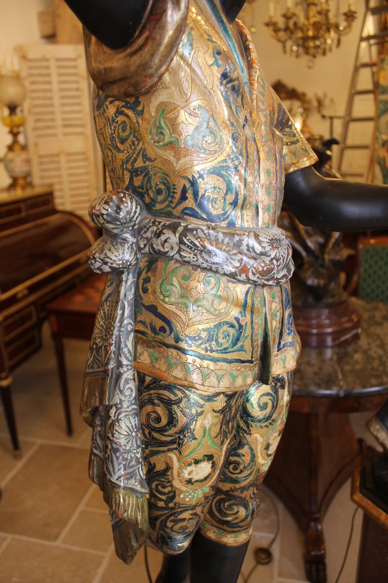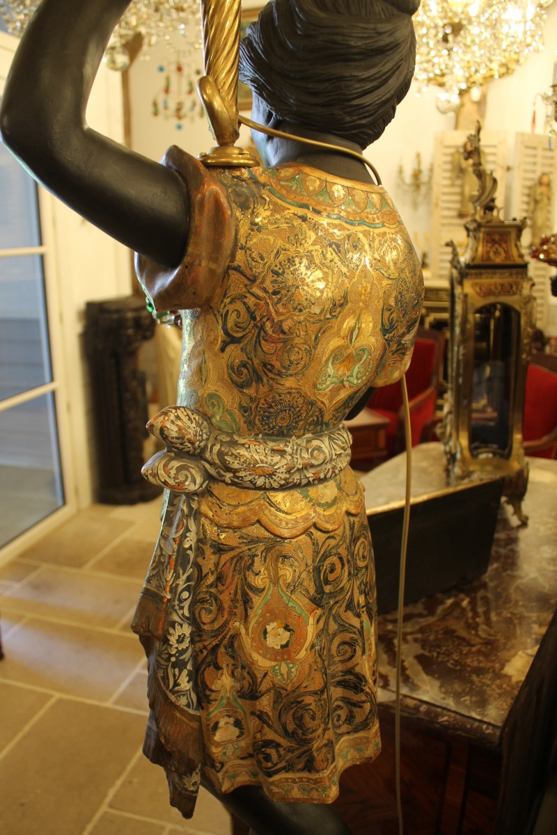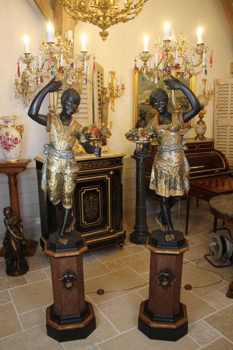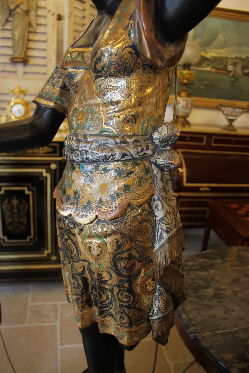 Exceptionnel couple de Nubiens en bois sculpté, doré et polychromé.