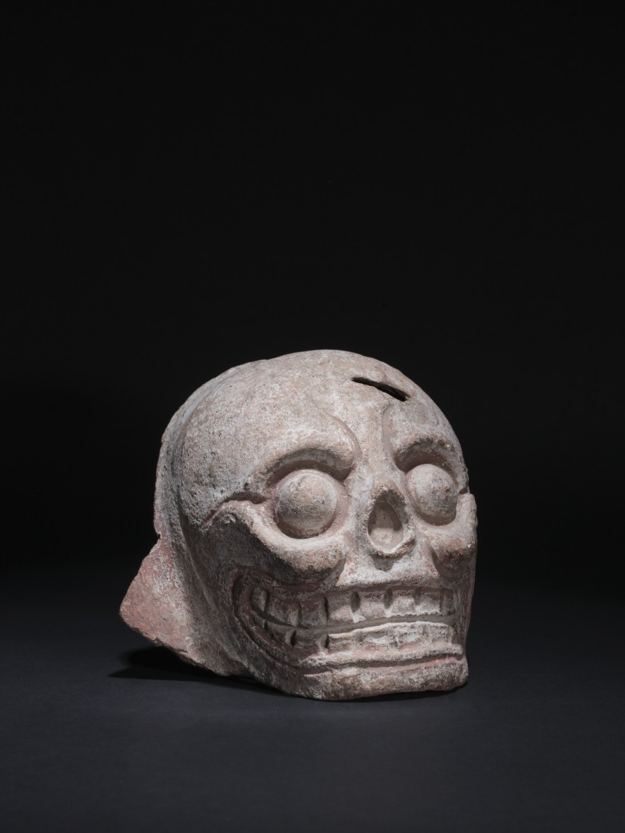 Ce type de crânes apparaît dans le décor de grandes urnes funéraires réalisées en zone Maya, plus particulièrement dans le département actuel du Quiché durant la période du classique final (650-850). Contenant les restes de personnages notables, ces urnes étaient placées dans les pyramides ou les grottes sacrées, tandis que le public venait y déposer des offrandes et solliciter leur pouvoir.