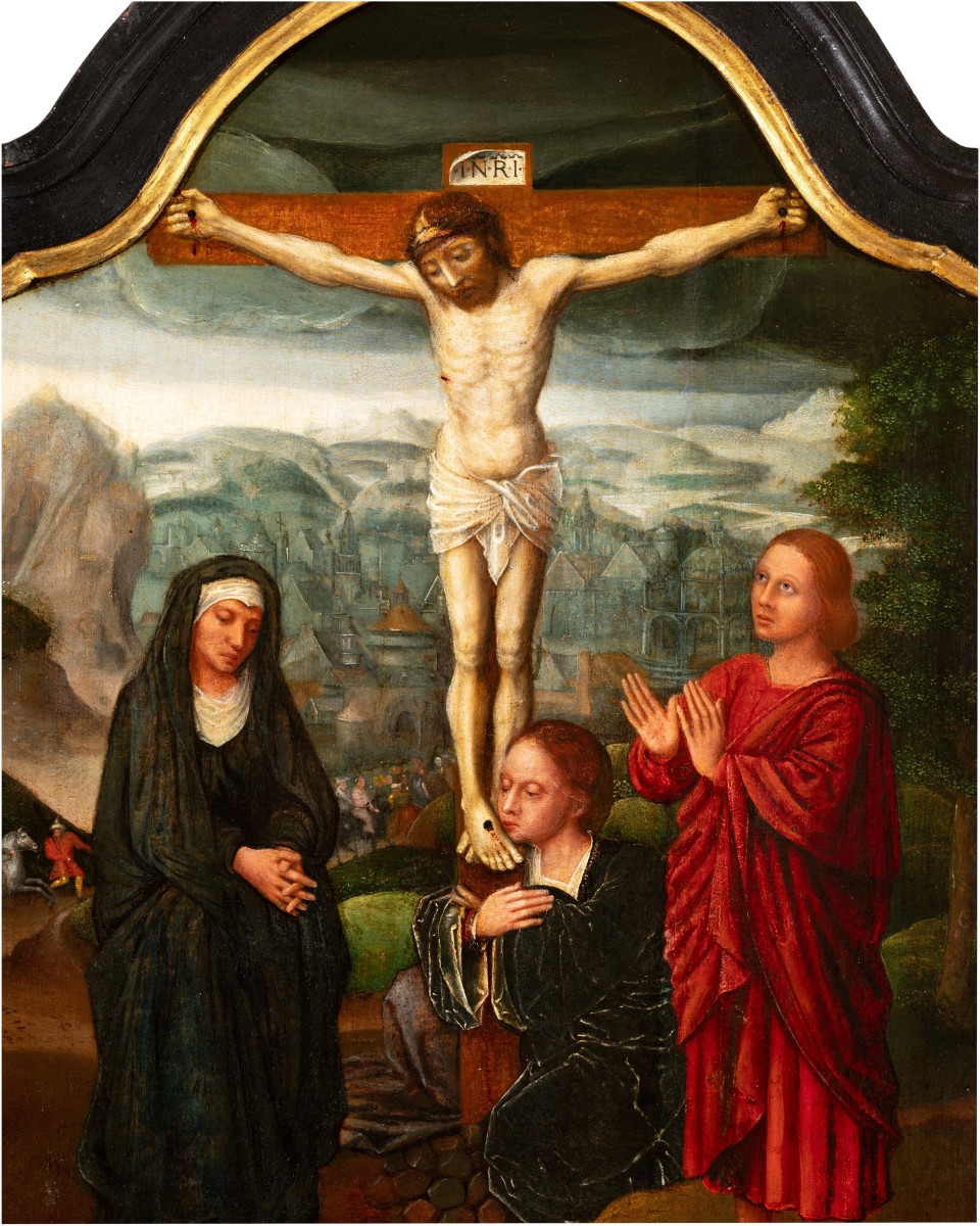 Notre panneau, à l'origine la partie centrale d’un triptyque, illustre l'un des sujets devenus universels dans l’art occidental, la scène de crucifixion.