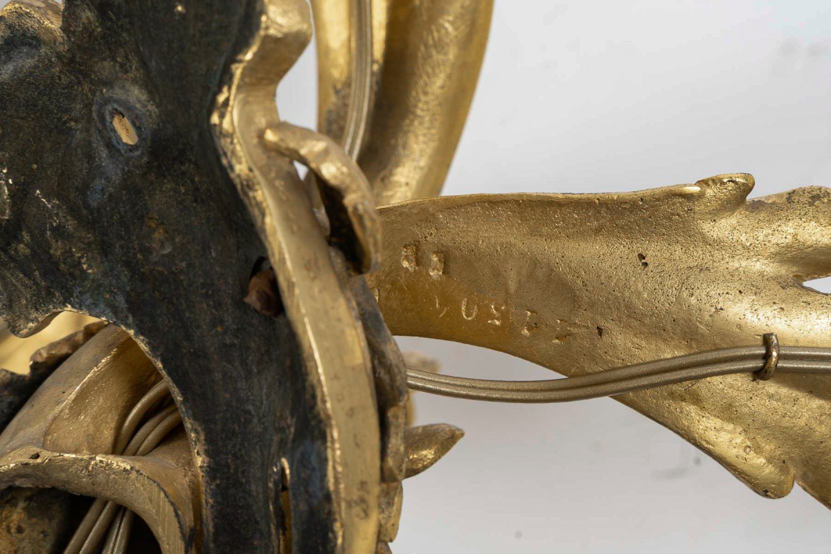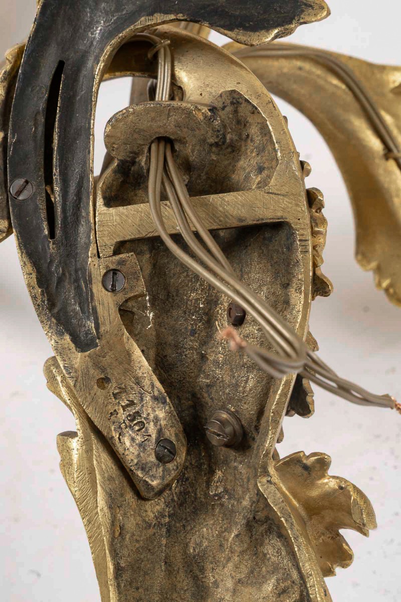 Retrouver le mobilier ou les objets d''art similaires à « Paire de grandes appliques en bronze doré vers 1850 d’après Juste-Aurèle Meissonnier une » présenté par MLD Antiquités, antiquaire à Saint Ouen dans la catégorie Appliques Napoléon III, Luminaires.