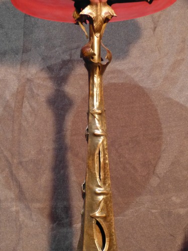Retrouver le mobilier ou les objets d''art similaires à « Daum et Majorelle - Lampe Art nouveau "Aux Chardons" » présenté par Galerie Vaudemont, antiquaire à Nancy dans la catégorie Lampe Art nouveau, Luminaires.