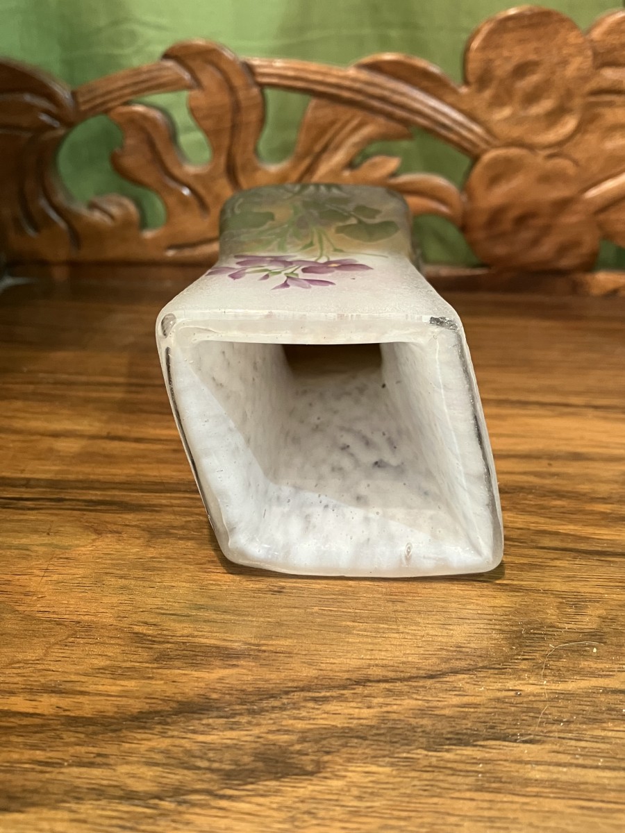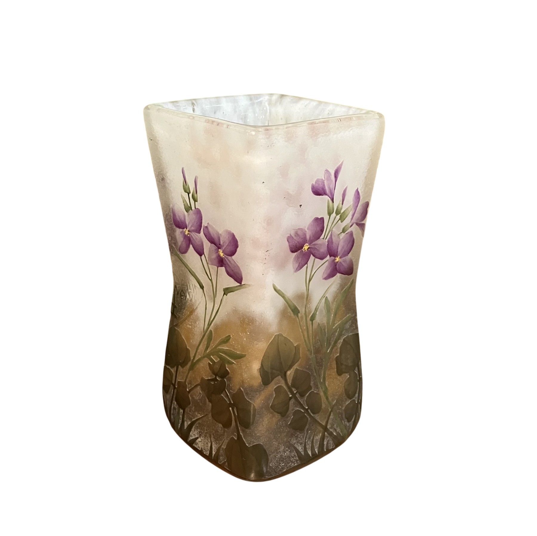 Daum ,Joli petit vase de forme losange avec renflement en son centre.