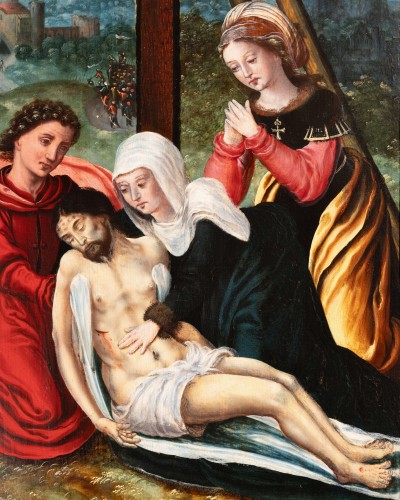 Retrouver le mobilier ou les objets d''art similaires à « Déploration du Christ, école Anversoise du XVIe siècle » présenté par Galerie Nicolas Lenté, antiquaire à Paris dans la catégorie Tableaux XVIe siècle Renaissance, Tableaux et dessins.