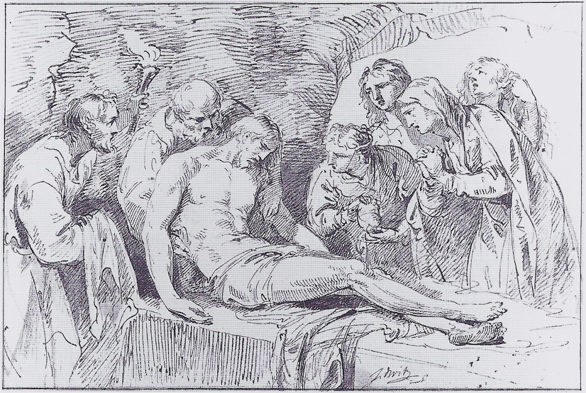 Ce puissant dessin d'une femme debout, probablement une personnification de l'Hiver, occupe une place particulière dans l'œuvre dessinée de De Wit. Son trait, à la fois ferme et austère, mais aussi libre, tranche avec sa manière habituelle, légère et aérienne. Il rappelle fortement les dessins de Rembrandt, et peut-être de Rubens, actifs un siècle auparavant. On connaît d'autres dessins de style comparable de De Wit ; notre feuille peut par exemple être comparée à une Déposition conservée au Musée d'Amsterdam (fig. 2). Le dessin d'Amsterdam date du début de la carrière de De Wit, de sa période anversoise, où il était profondément influencé par les dessins de Rubens et de Van Dyck.