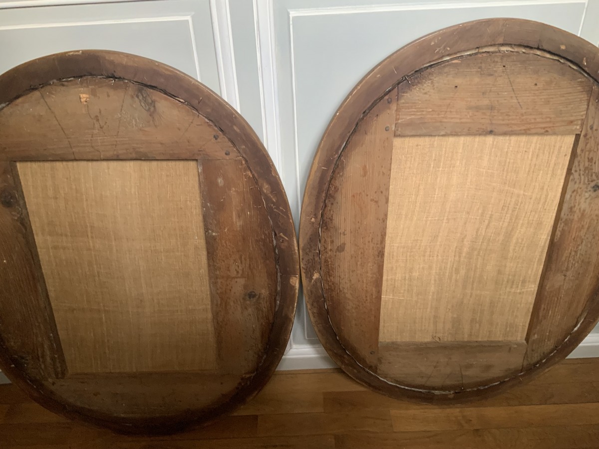 Nos tableaux sont présentés dans un cadre ovale datant du XIXe.