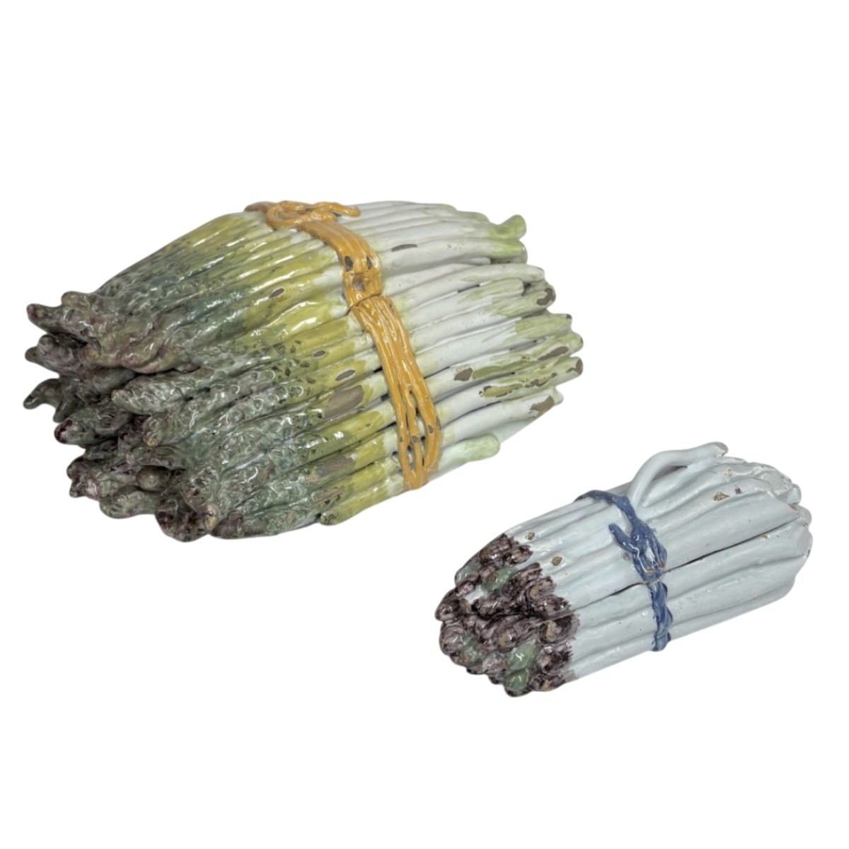 Une terrine et une boîte en trompe-l'oeil en forme de bottes d'asperges.