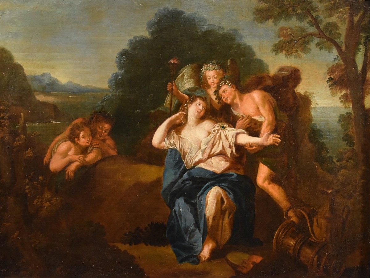 Retrouver le mobilier ou les objets d''art similaires à « Dionysos et Ariane sur l'île de Naxos, Atelier d'Antoine Coypel (1661 - 1722) » présenté par Antichità Castelbarco, antiquaire à Riva del Garda dans la catégorie Tableaux XVIIe siècle Louis XIV, Tableaux et dessins.