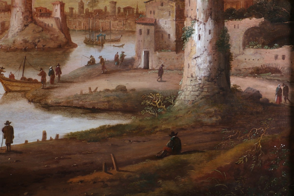 Retrouver le mobilier ou les objets d''art similaires à « Dirck Vheraert (1610-1680) signé DVH - Grand paysage animé, capriccio maritime » présenté par Galerie PhC, antiquaire à Troyes dans la catégorie Tableaux XVIIe siècle Louis XIII, Tableaux et dessins.