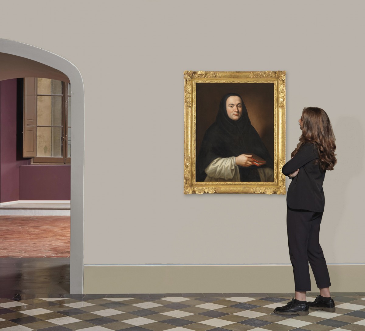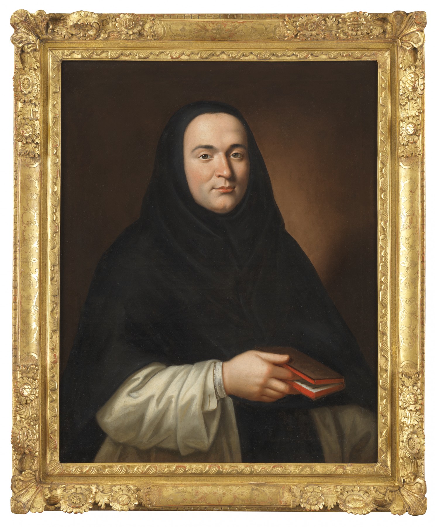 Dans notre portrait, on retrouve les codes de l’école française de peinture du XVIIIe siècle, notamment dans le traitement du sujet et la maitrise du clair-obscur. La lumière douce qui lèche les carnations crée un effet de profondeur et de recueillement. Le contraste entre le noir du scapulaire à capuchon et le blanc de la tunique est traité avec finesse. Et le rouge du livre apporte une touche de chaleur qui attire l’œil, suggérant l’importance du savoir et de la foi.