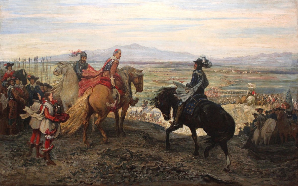 Retrouver le mobilier ou les objets d''art similaires à « Edouard Nieuwenhuys (1840-1872) Louis XIII et Richelieu au siège de Perpignan » présenté par Galerie de Frise, antiquaire à Beleymas dans la catégorie Tableaux XIXe siècle Napoléon III, Tableaux et dessins.