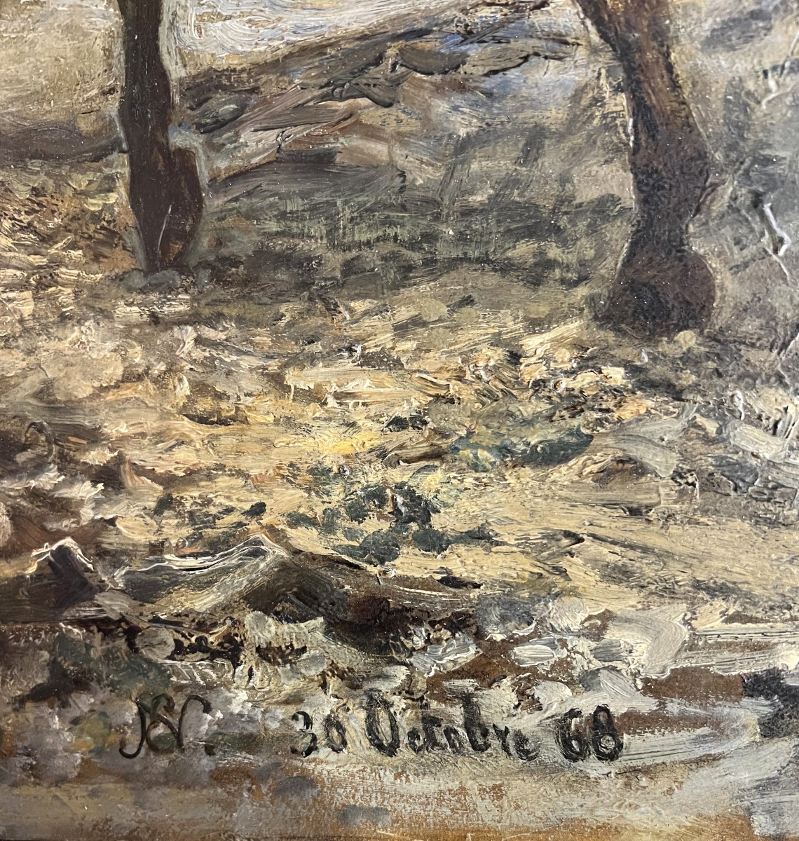 Monogrammée et datée en bas vers le centre 30 octobre 1868