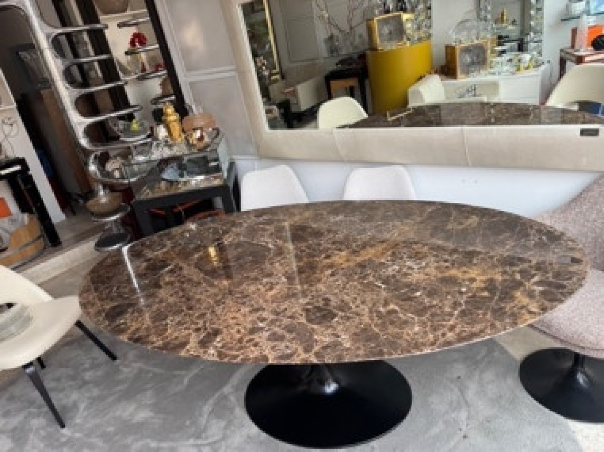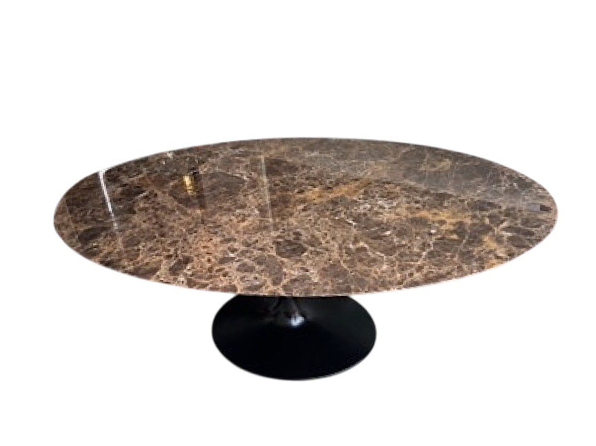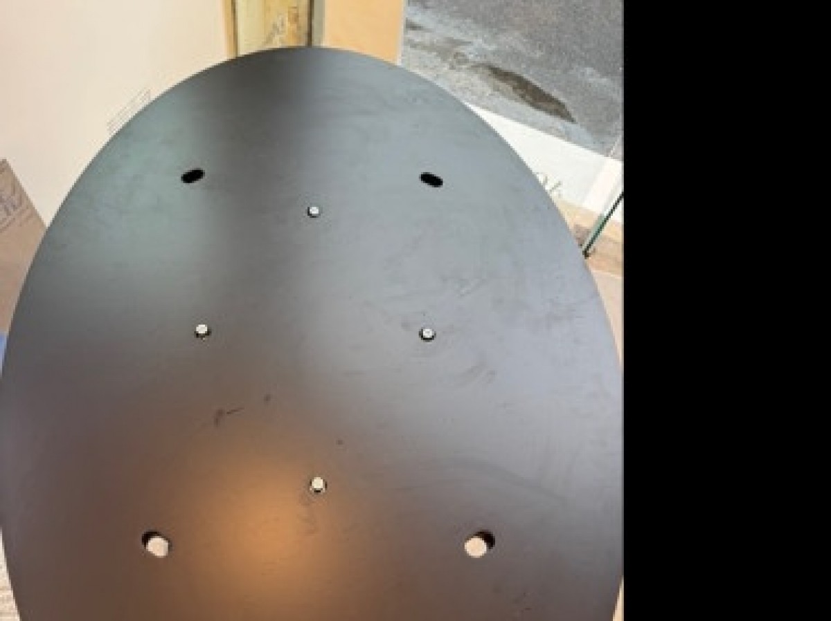 Plateau ovale sur un pied aluminium recouvert de Rilsan Noir . Circa 2022 Aluminium traité et protégé avec du Rilsan. Plaquette avec le logo KnollStudio signature du designer.