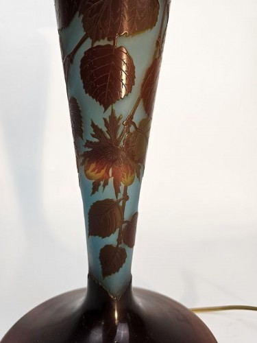 Retrouver le mobilier ou les objets d''art similaires à « Emile Gallé - Lampe champignon Art nouveau "Aux noisettes" » présenté par Antiquités Art Nouveau, antiquaire à Nancy dans la catégorie Lampe Art nouveau, Luminaires.