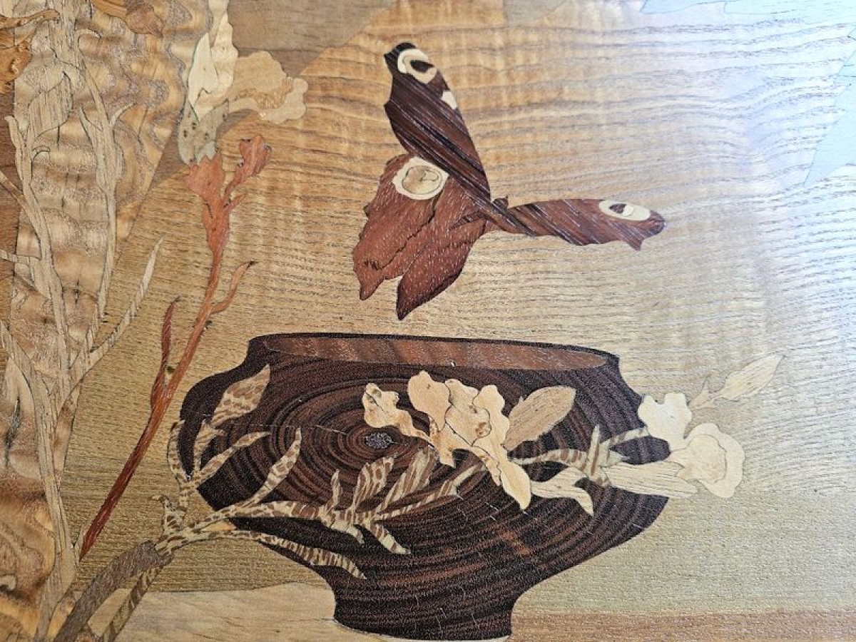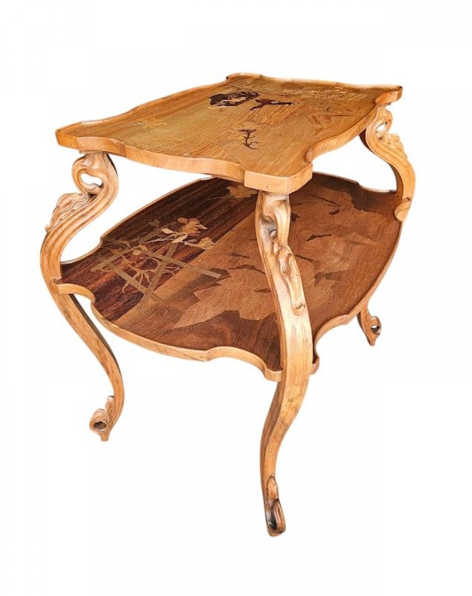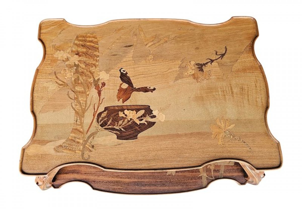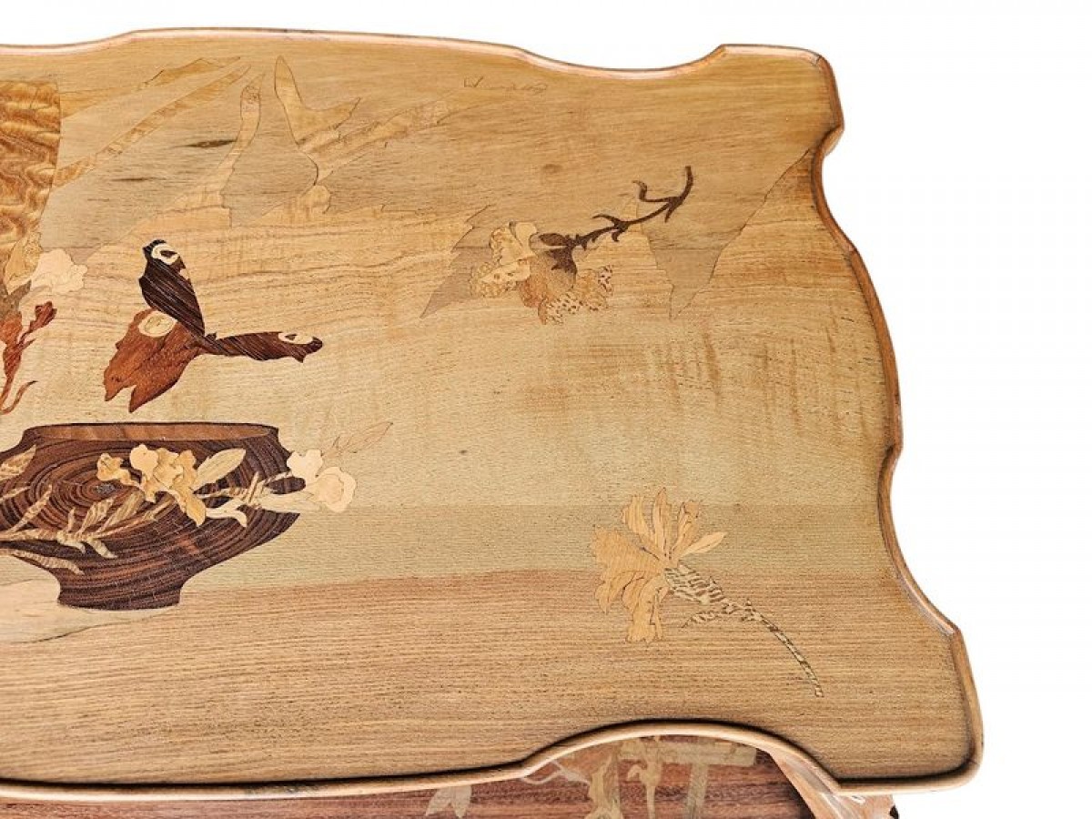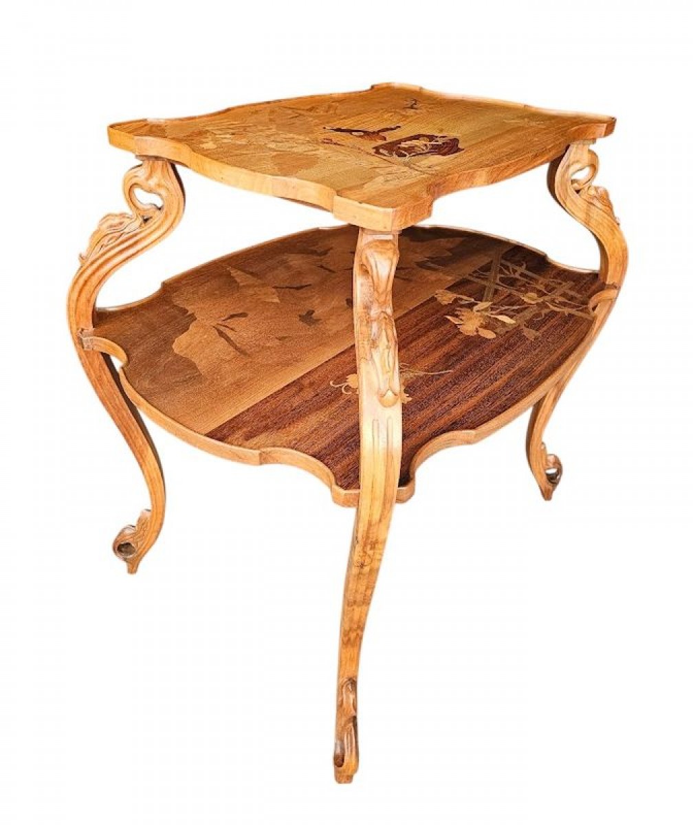 Retrouver le mobilier ou les objets d''art similaires à « Emile Gallé - Table à thé Art nouveau "Papillon et vases Gallé" » présenté par Antiquités Art Nouveau, antiquaire à Nancy dans la catégorie Table & Guéridon Art nouveau, Mobilier.