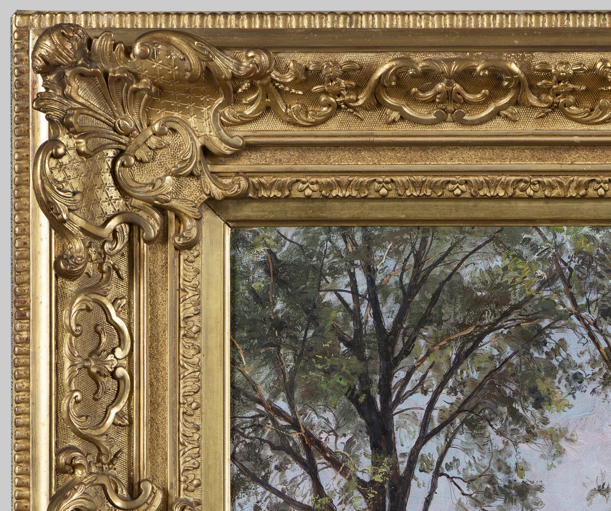 Cette peinture à l’huile est en excellent état de conservation, sans aucun accident ni restauration importante. Il se trouve encore dans son beau cadre d’origine en bois et stuc doré parfaitement restauré.