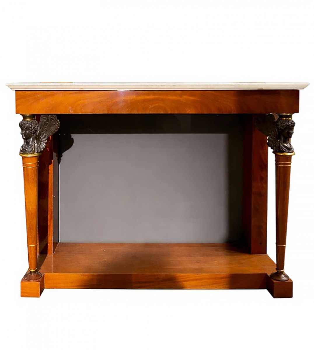La console proposée s’inscrit pleinement dans la production de cette époque, caractéristique de l’influence gréco-égyptienne développée sous le Consulat.