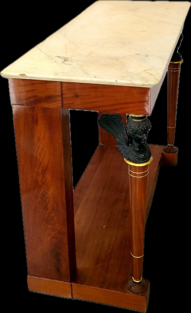 Retrouver le mobilier ou les objets d''art similaires à « Console Empire en acajou et placage » présenté par Galerie de Cicco, antiquaire à Monaco dans la catégorie Console Empire, Mobilier.