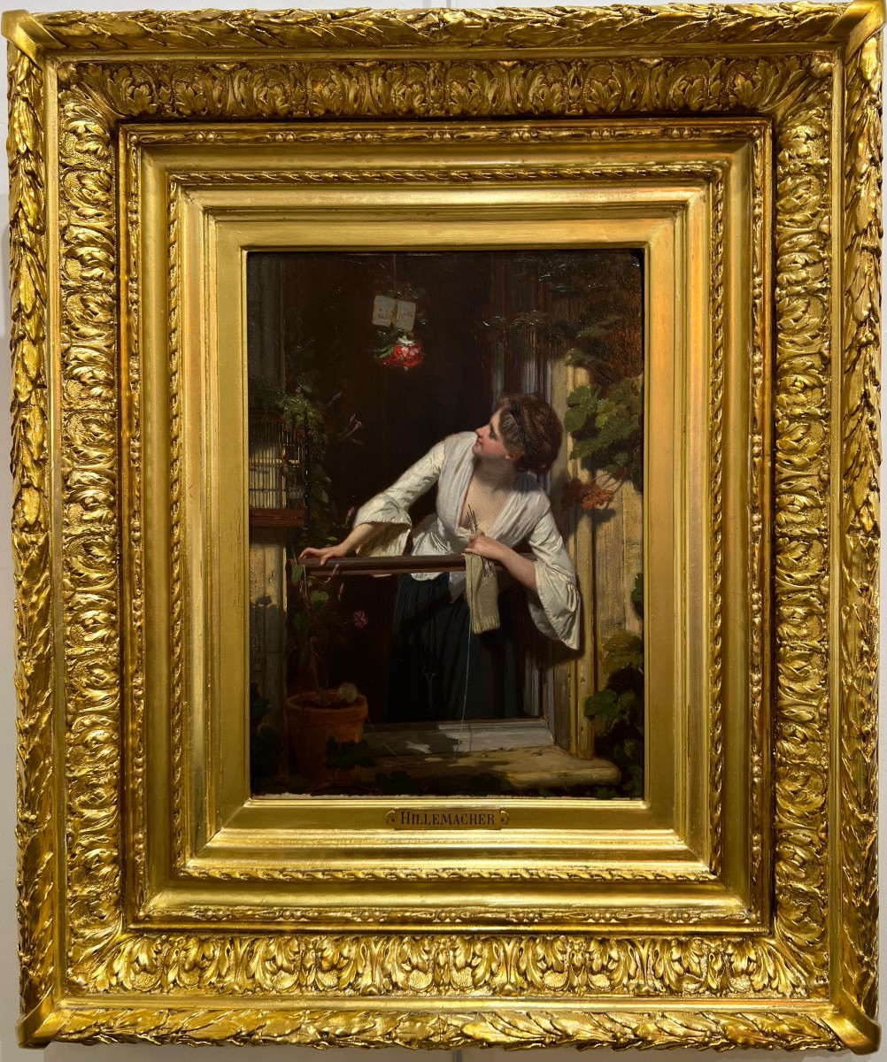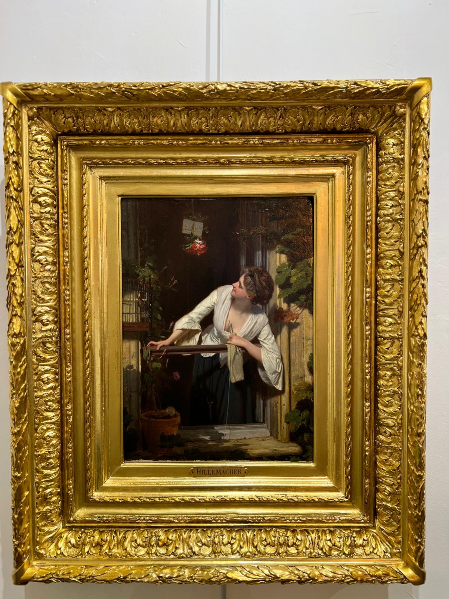 Retrouver le mobilier ou les objets d''art similaires à « Eugène Ernest HILLEMACHER (1818–1887) - Le cadeau à la fenêtre » présenté par Antikvariat Nice, antiquaire à Nice dans la catégorie Tableaux XIXe siècle Napoléon III, Tableaux et dessins.