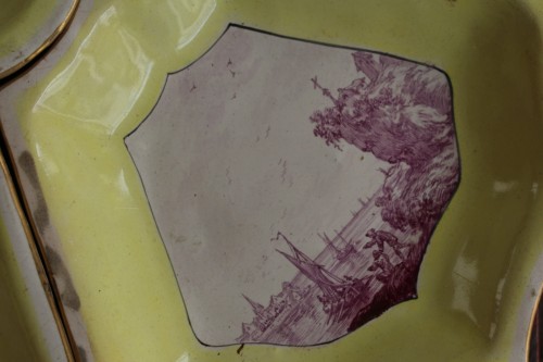Service à sorbet en faïence de Niderviller réalisé par le baron de Custine vers 1760. la faïencerie de Niderviller est l'une des plus anciennes de Lorraine, elle est aussi la deuxième manufacture en France à avoir fabriqué également de la porcelaine. Elle fut créée à Niderwiller en 1735. Tirant le meilleur parti de sa situation géographique, proche de l'Allemagne et de ses savoir-faire techniques ( qu'on pense en particulier à Meissen ) et influencée par les mouvements artistiques français ( notamment Antoine Watteau ) dont notre service est un très bel exemple, et la finesse de ses productions la font souvent comparer à la manufacture de Sèvre.