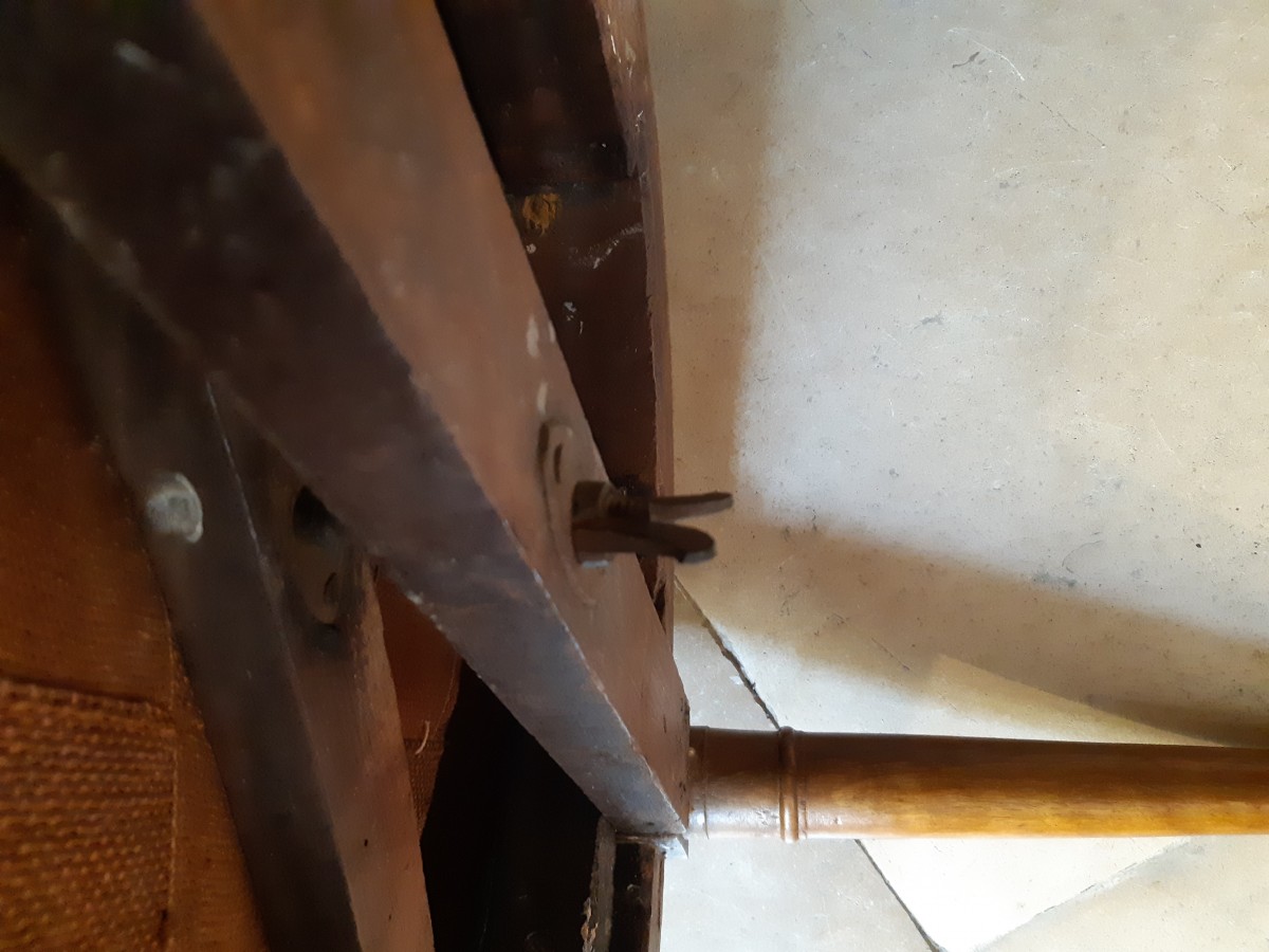 L'assise, indépendante du piètement tourne sur des galets en bois ( le système est d'origine )