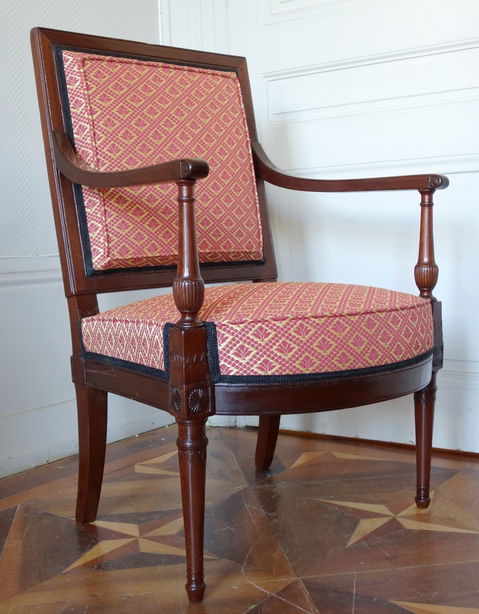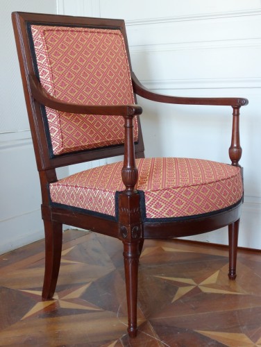 Retrouver le mobilier ou les objets d''art similaires à « Fauteuil de bureau Directoire en acajou estampille de Georges Jacob » présenté par GSLR Antiques, antiquaire à Grenoble dans la catégorie Fauteuil & Bergère Directoire, Sièges.