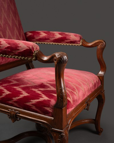 Retrouver le mobilier ou les objets d''art similaires à « Fauteuil à châssis époque Régence premier tiers du XVIIIe siècle » présenté par Laurent Chalvignac, antiquaire à Paris dans la catégorie Fauteuil & Bergère Régence, Sièges.