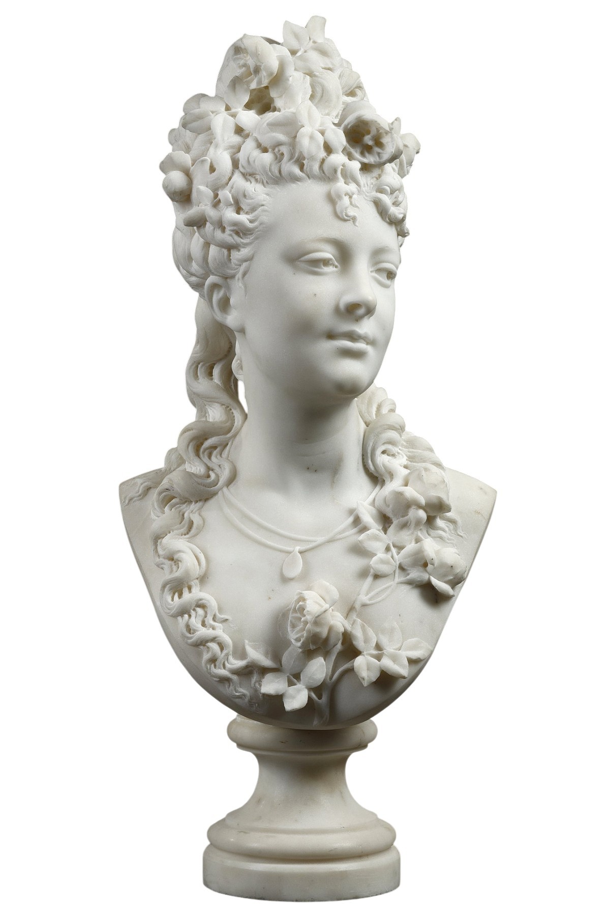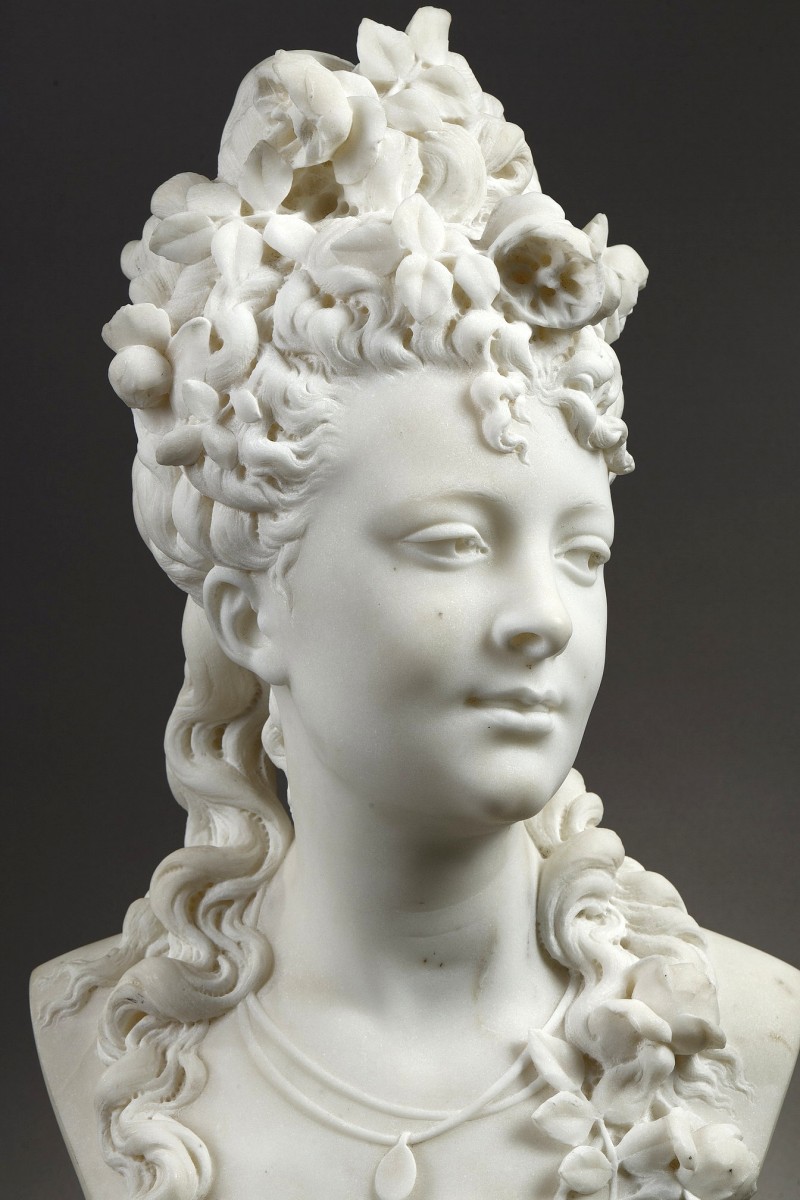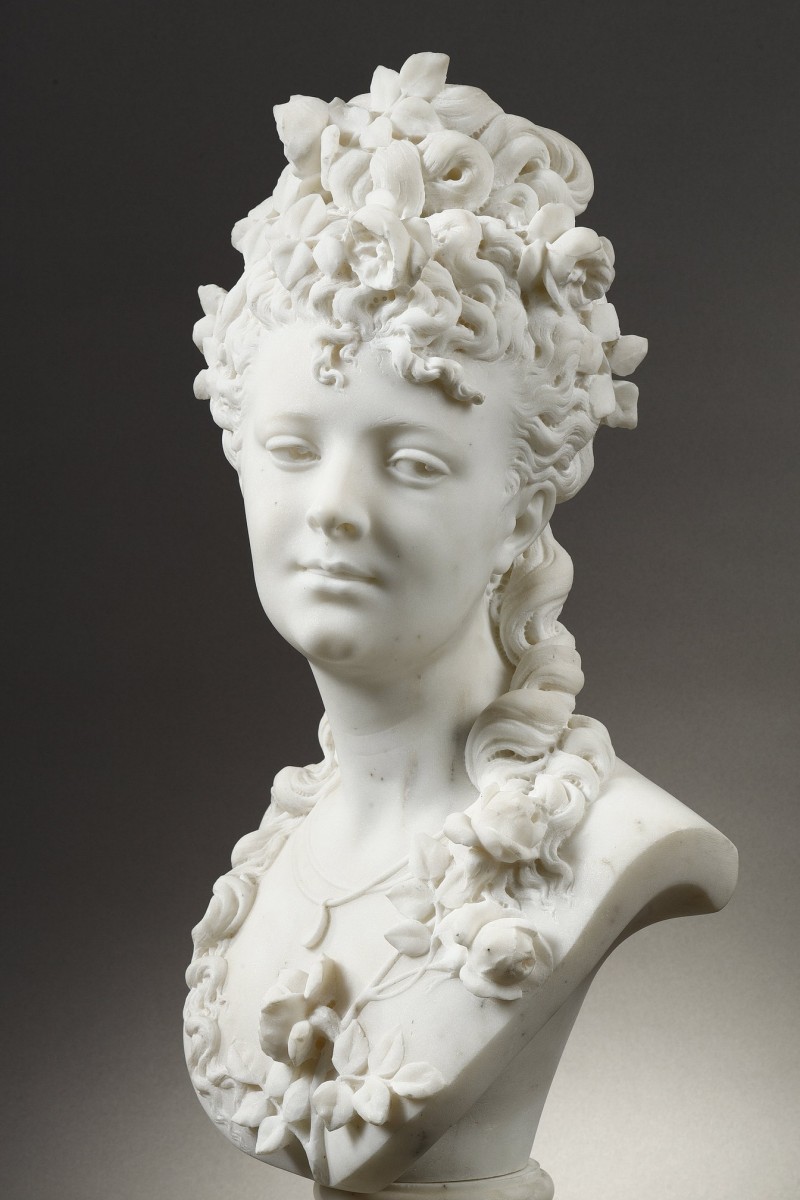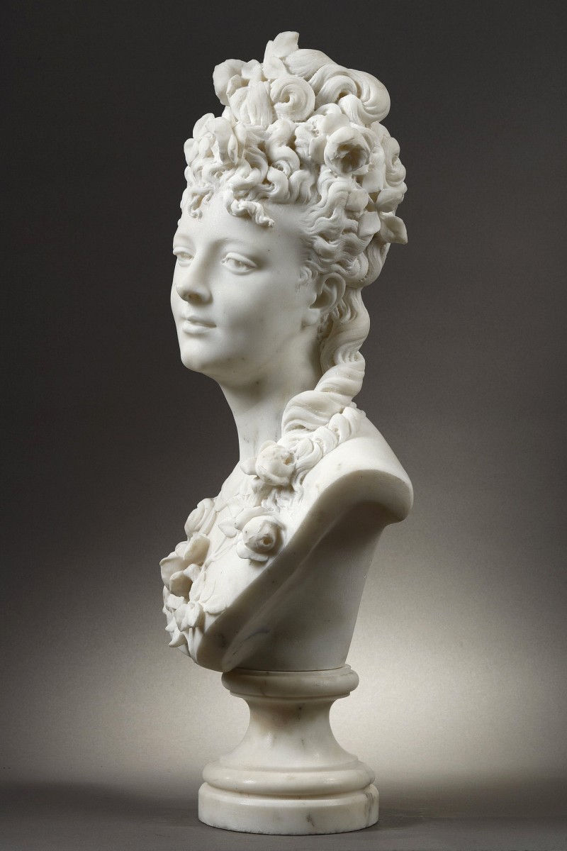 Retrouver le mobilier ou les objets d''art similaires à « Femme aux roses - Albert-Ernest CARRIER-BELLEUSE (1824-1887) » présenté par Galerie Tourbillon, antiquaire à Paris dans la catégorie Sculpture en Marbre Napoléon III, Sculpture.