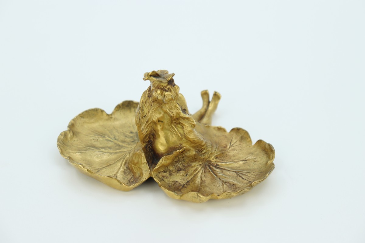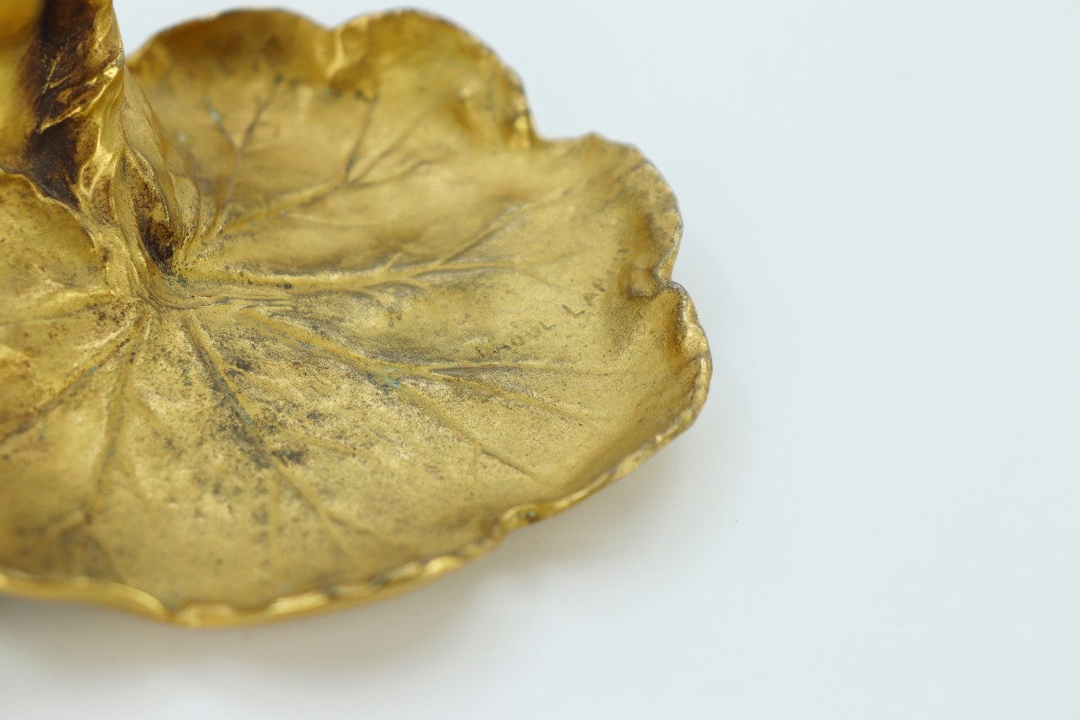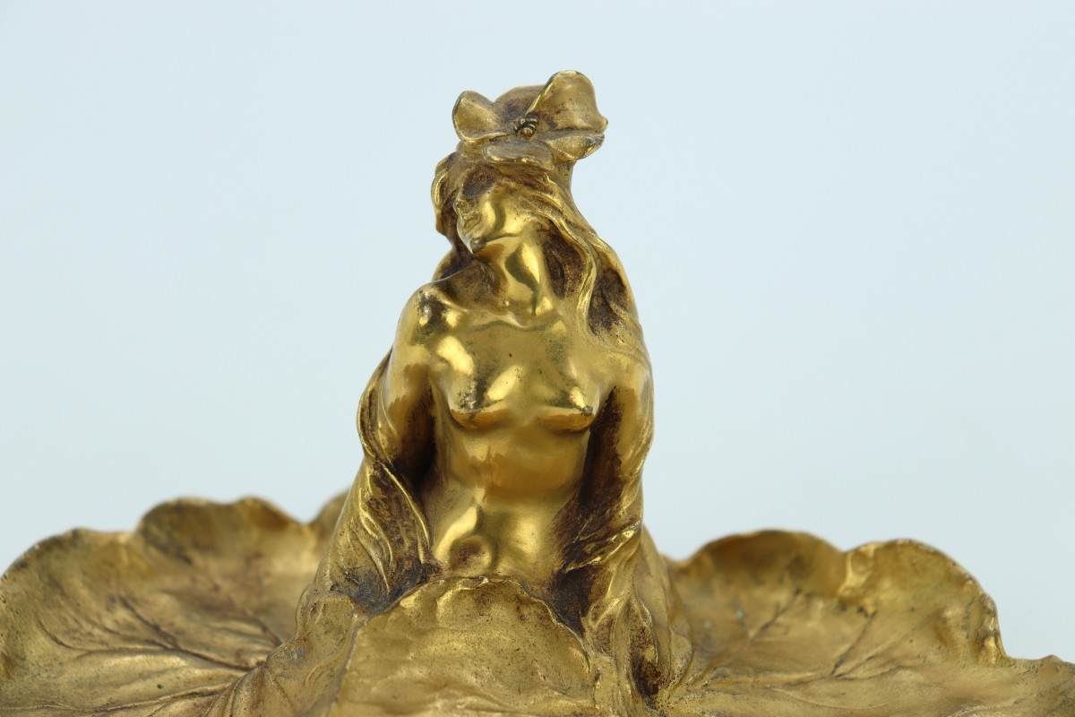 Femme géranium, vide-poches en bronze doré par Raoul Larche. Cachet de fondeur Siot-Decauville.