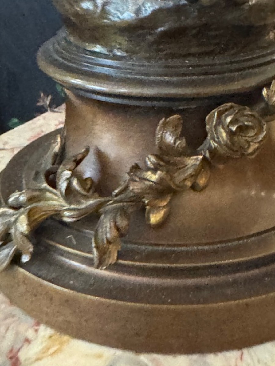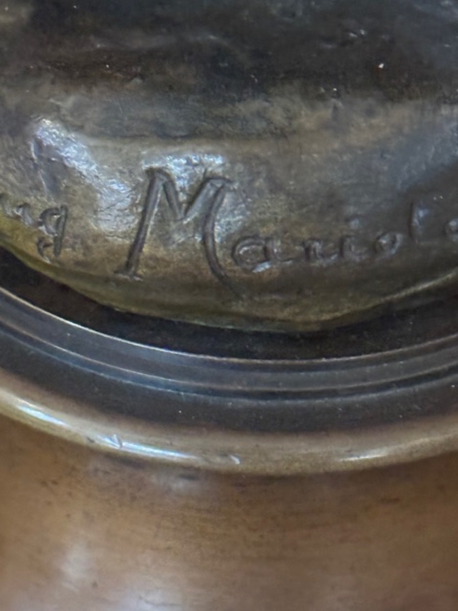 Bronze représentant une femme jouant de la double flute patine brune signé Eugène Marioton est un sculpteur et médailleur français, né le 7 avril 1857 à Paris où il est mort dans le 4? arrondissement le 19 septembre 1933. Il est le frère du sculpteur Claudius Marioton .