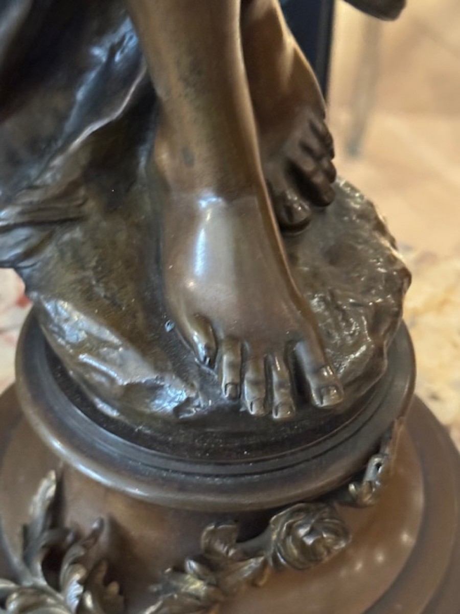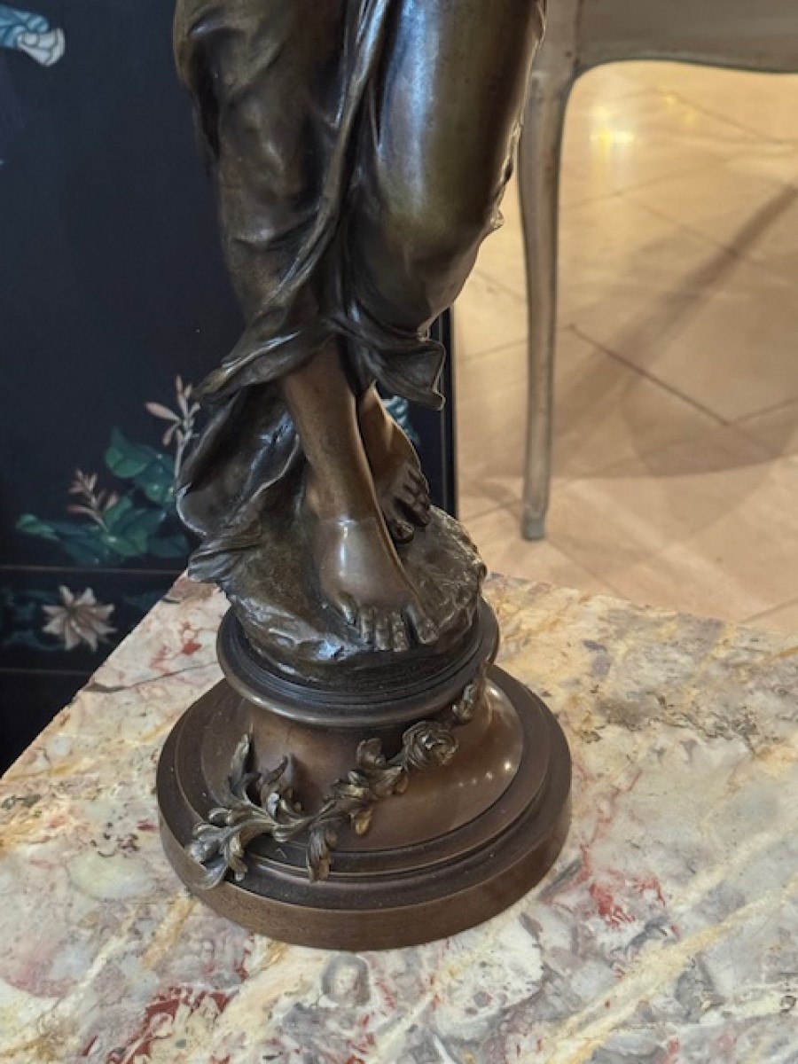 Retrouver le mobilier ou les objets d''art similaires à « Femme jouant de la double flute - Eugène Marioton (1854 - 1933) » présenté par Antiquités Paul Azzopardi, antiquaire à Marseille dans la catégorie Sculpture en Bronze Napoléon III, Sculpture.