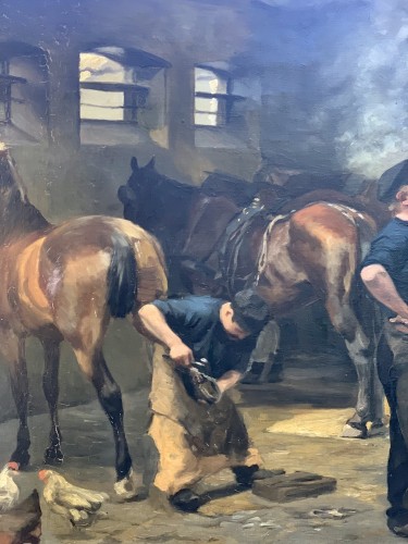 Retrouver le mobilier ou les objets d''art similaires à « Ferrage à l’écurie du château , Gustav Vilhelm Blom (1853-1942) » présenté par Galerie Golovanoff, antiquaire à Paris dans la catégorie Tableaux du XXe siècle Napoléon III, Tableaux et dessins.