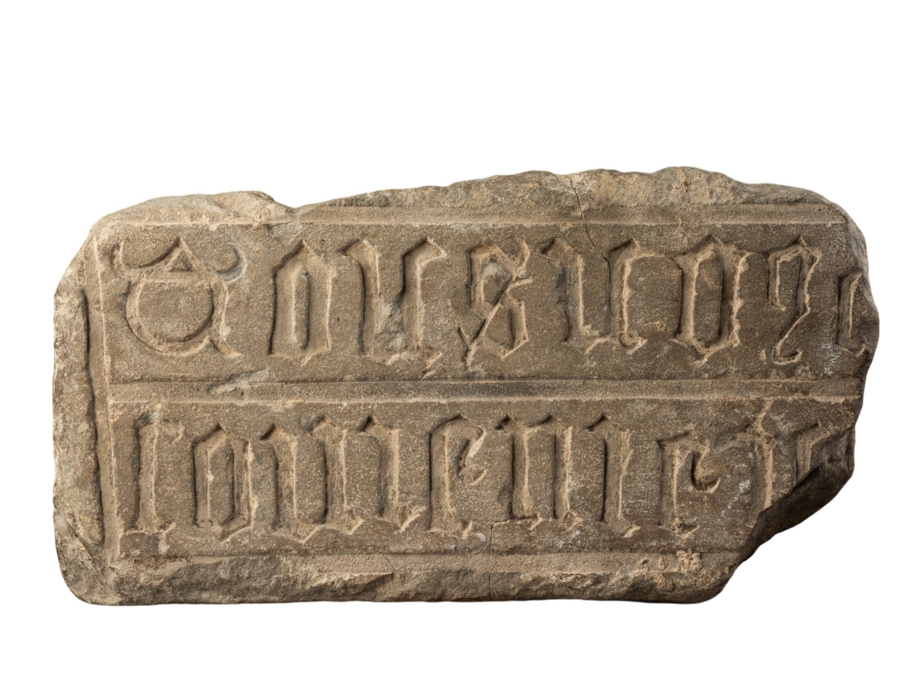 Retrouver le mobilier ou les objets d''art similaires à « Fragment d’inscription gothique - nord de la France, XVe siècle » présenté par Dei Bardi Art, antiquaire à Bruxelles dans la catégorie Sculpture en pierre Moyen Âge, Sculpture.