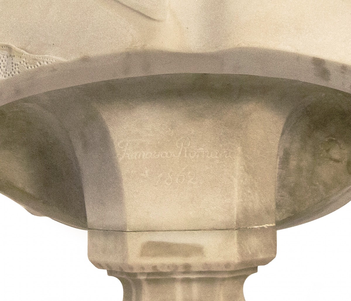 sculpture en marbre, 60,5 cm. Signée et datée au dos : "Francesco Romano 1862"
