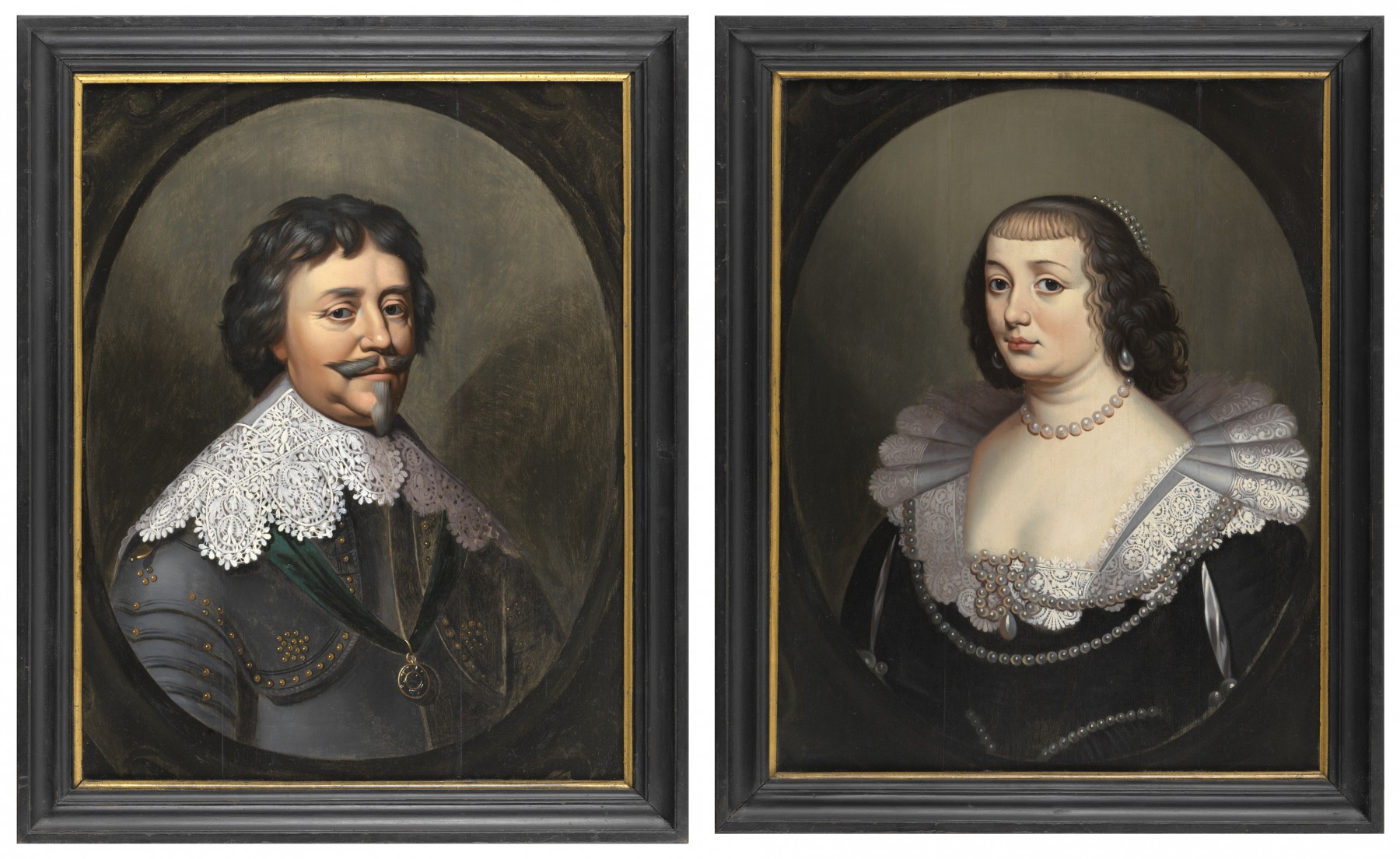 Le gouverneur (stathouder en hollandais) des Provinces-Unies et son épouse sont tous deux portraiturés dans des ovales feints, usage répandu au milieu du XVIIe siècle, simulant ainsi l’apparition des protagonistes dans l’encadrement d’une fenêtre.