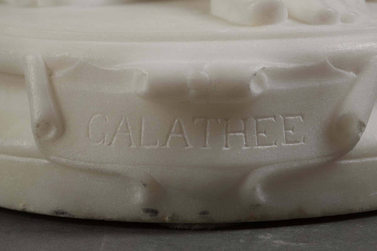 Un modèle en marbre grandeur nature de Galathée d’1m70 existe, dont le plâtre original, présenté Hors concours par Marqueste au Salon de 1884 (n°3731), est conservé au musée des Augustins de Toulouse sous le titre Le Réveil (Galatée). La version en marbre — réalisée vers 1885, fut acquise par l’État français. Après plusieurs affectations, dont au Louvre, elle a été officiellement rattachée au musée d’Orsay en 1986. Depuis 2019, elle est exposée (ou en réserve) au musée départemental Dobrée de Nante.