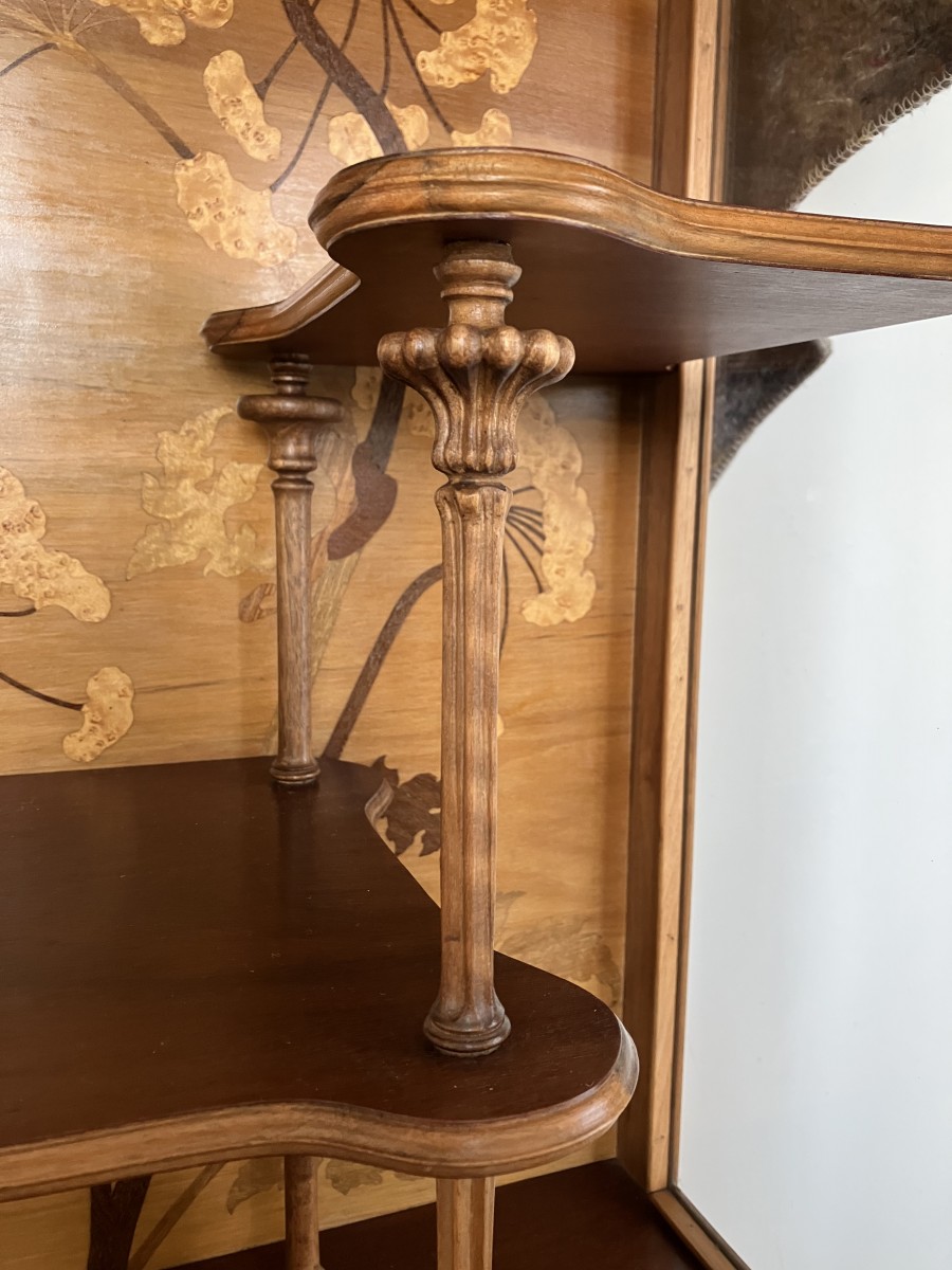A l'intérieur, les petites étagères sont soutenues par des colonnettes sculptée à la manière naturaliste ( tiges et inflorescence d'ombellifères).