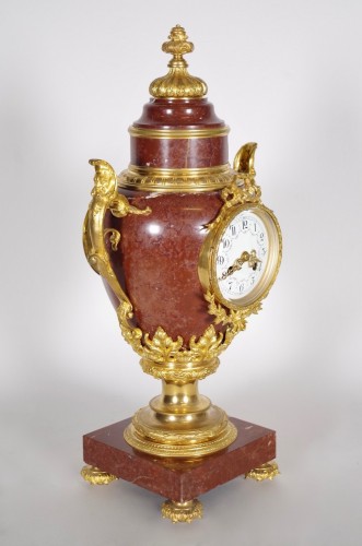 Importante garniture de cheminée en bronze doré et marbre rouge du Maine.