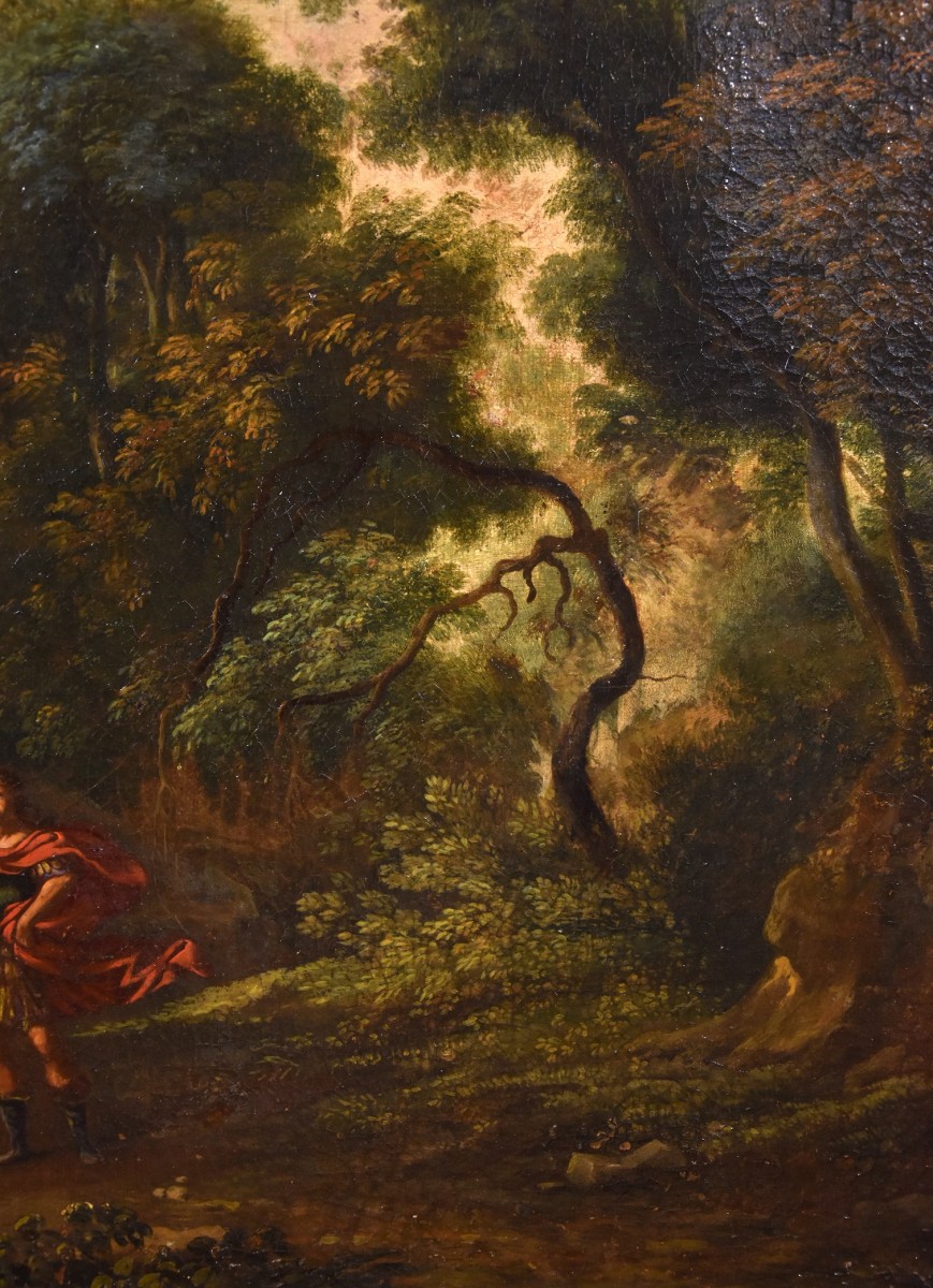 Retrouver le mobilier ou les objets d''art similaires à « Paysage boisé de la campagne romaine, école italienne du 17e siècle » présenté par Antichità Castelbarco, antiquaire à Riva del Garda dans la catégorie Tableaux XVIIe siècle Louis XIV, Tableaux et dessins.
