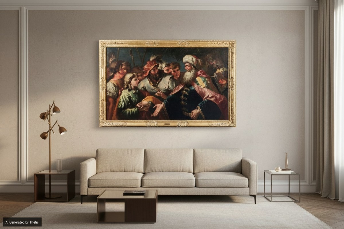 "Joseph vendu à Putifarre" huile sur toile, 118x196 cm, avec cadre 140x218,5 cm