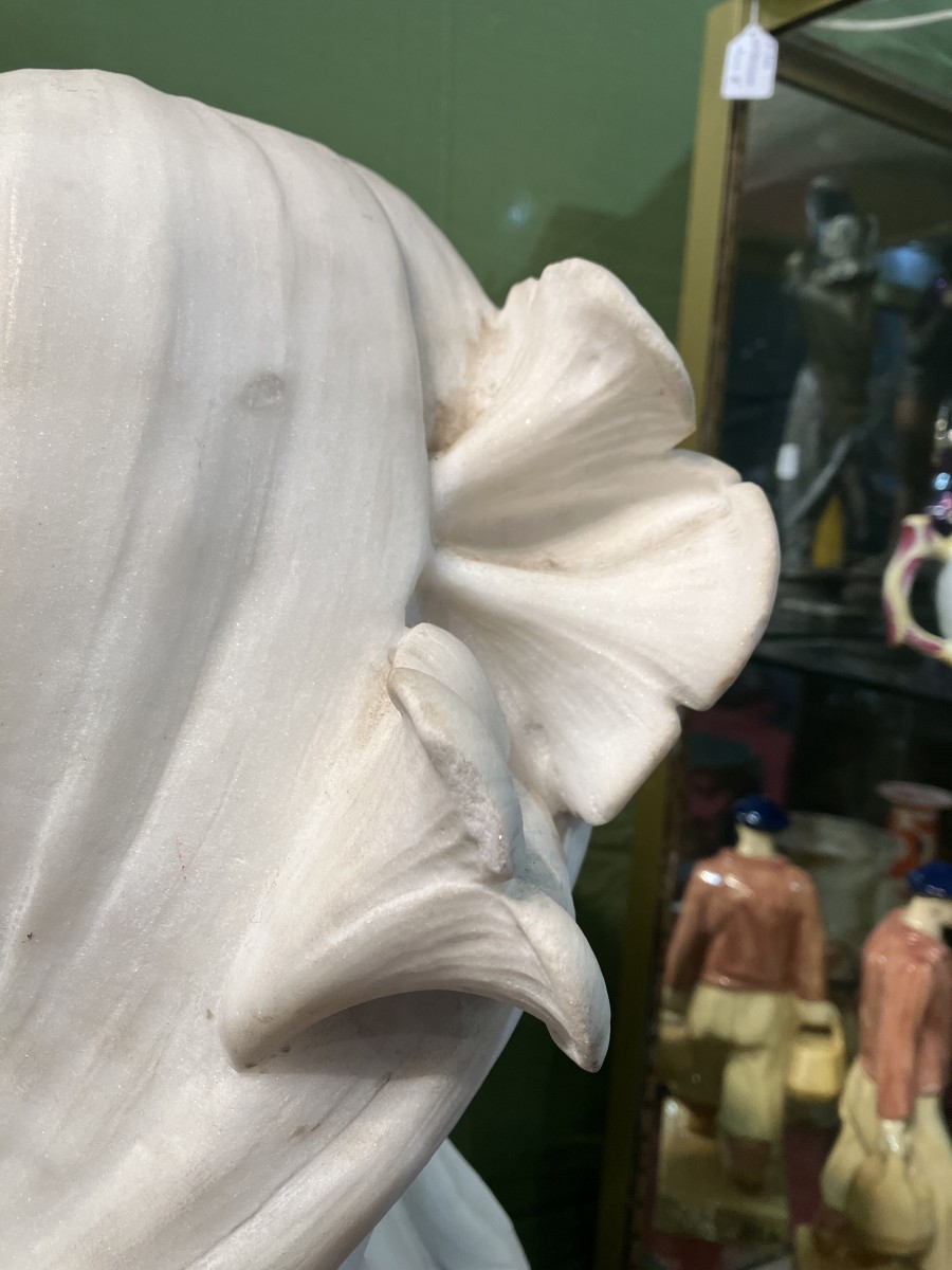 Grand buste en marbre art nouveau, jeune fille aux Nénuphars par le sculpteur George Charles Coudray.