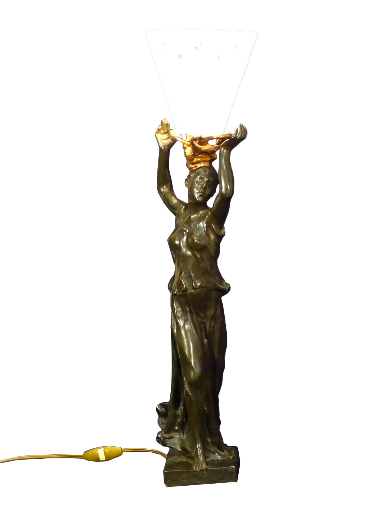 Retrouver le mobilier ou les objets d''art similaires à « Georges de Kerveguen - Lampe Art Nouveau en bronze » présenté par Galerie Vaudemont, antiquaire à Nancy dans la catégorie Lampe Art nouveau, Luminaires.