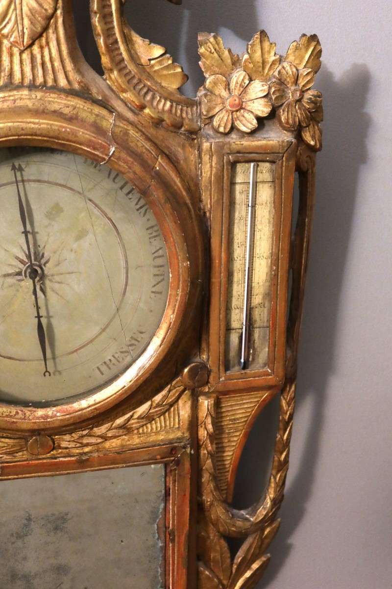 Retrouver le mobilier ou les objets d''art similaires à « Grand baromètre Louis XVI en bois doré » présenté par Philippe Cote Antiquités, antiquaire à Chauffailles dans la catégorie Baromètre Louis XVI, Objet de décoration.